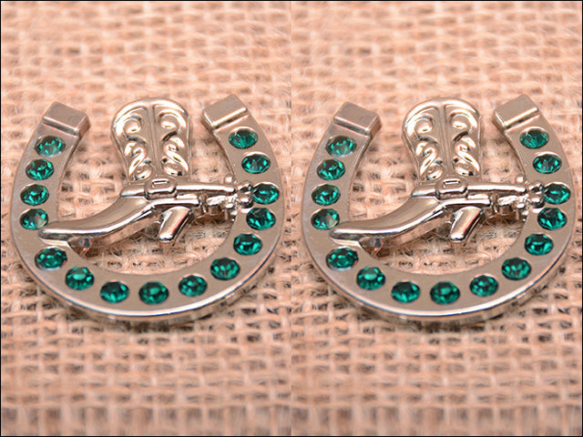 Western Screw Back Concho Emerald Horseshoe Boots Crystals Headstall Tack
