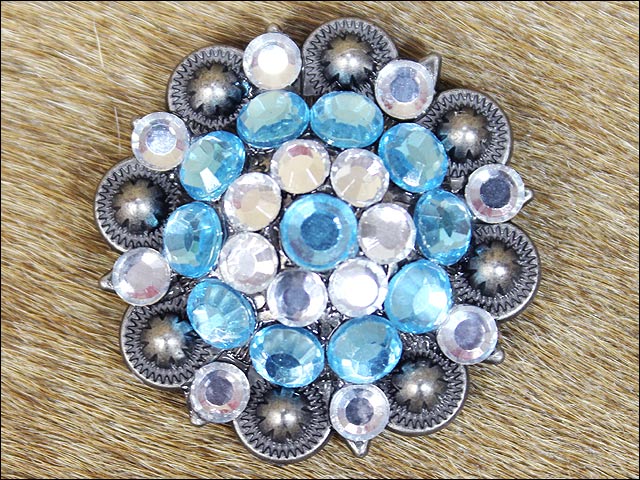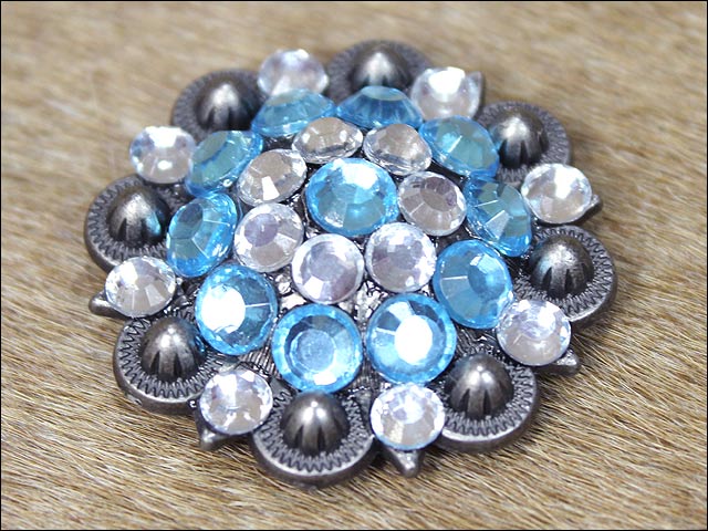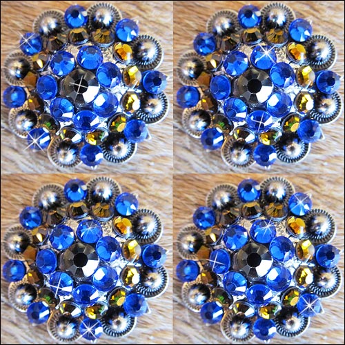 1.5" Hilason Western Style Silver Berry Rhinestone Bling Tack Headstall Saddle Concho Red/Blue