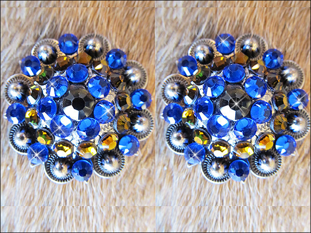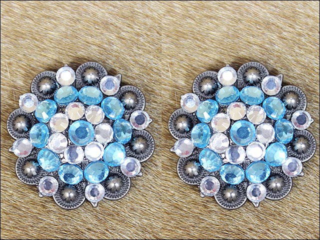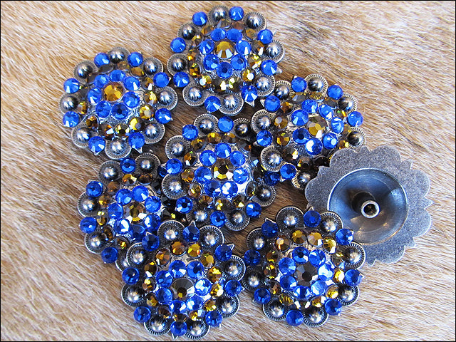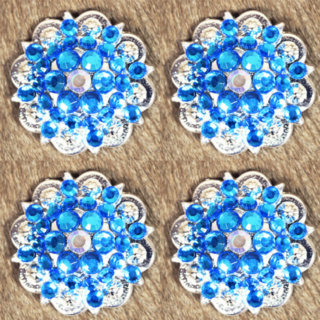 Western Screw Back Concho1 Blue Crystal Floral Bling Headstall Cowgirl