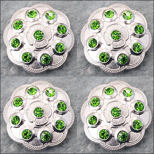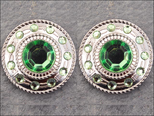 Western Screw Back Concho1 Green Crystal Wheel Bling Headstall Cowgirl