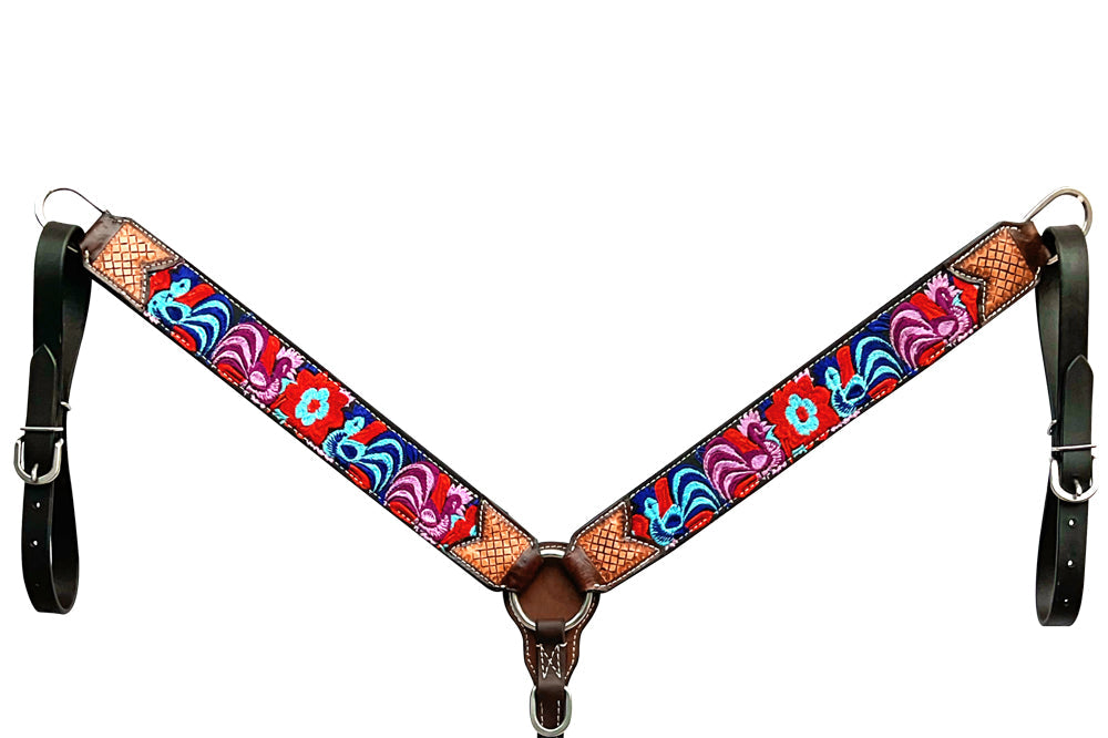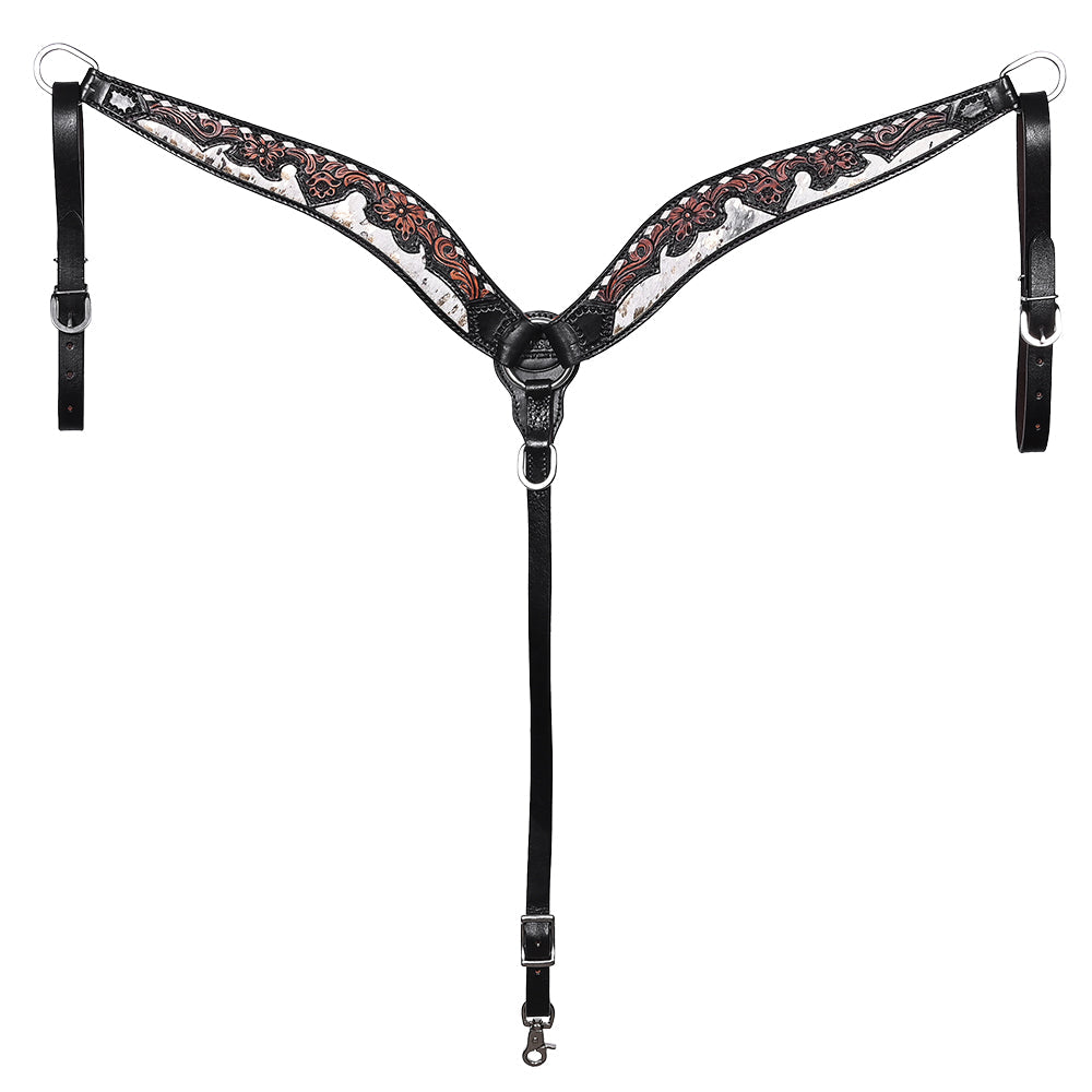 Hilason Horse Floral Hand Painted American Leather Breast Collar Headstall Dark Brown