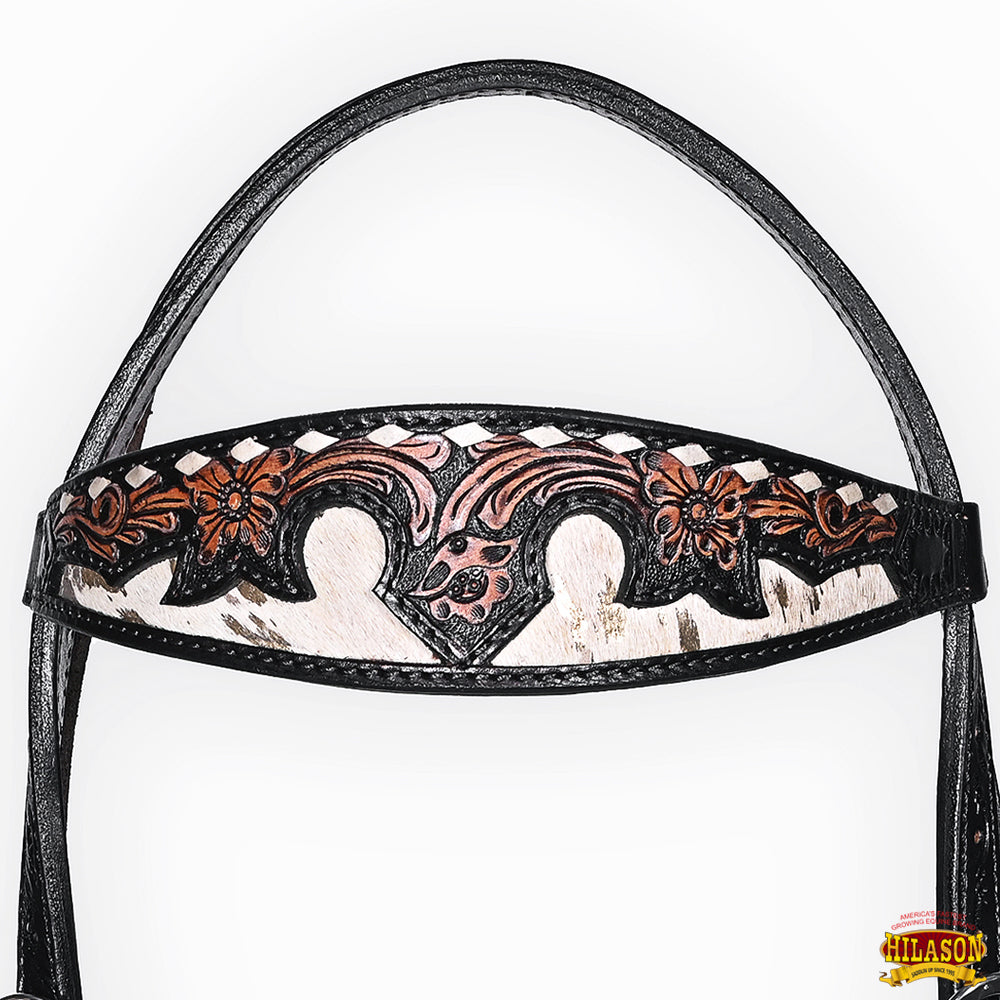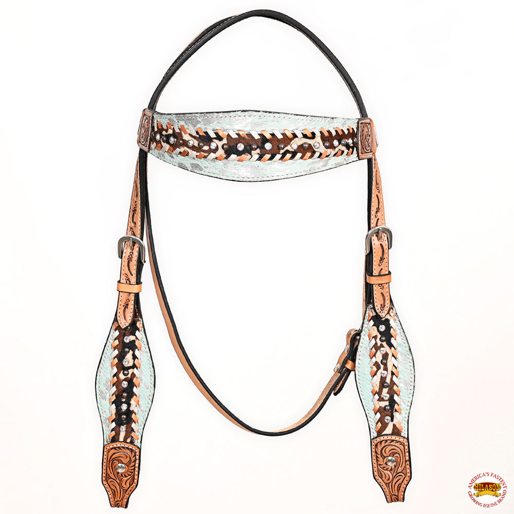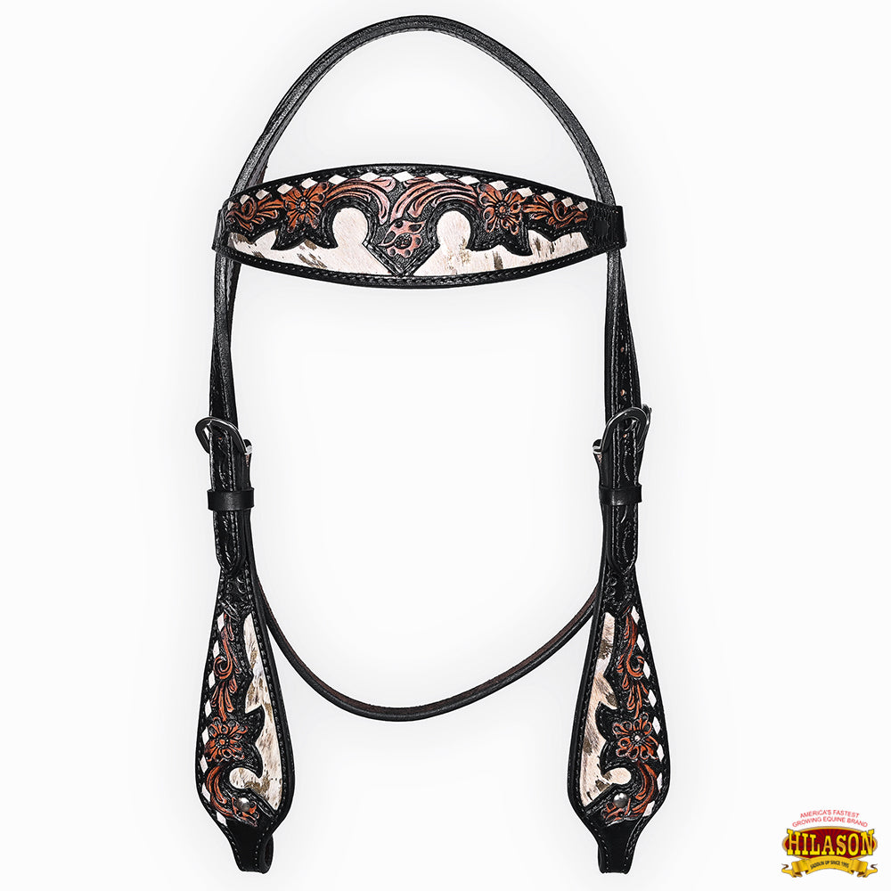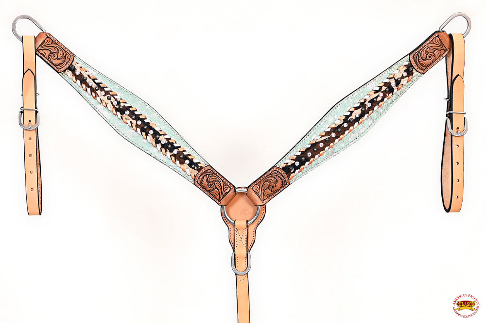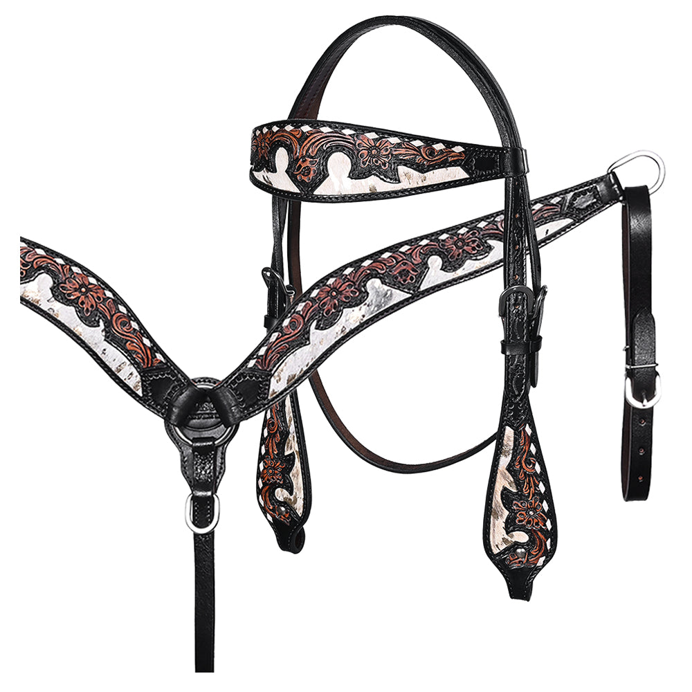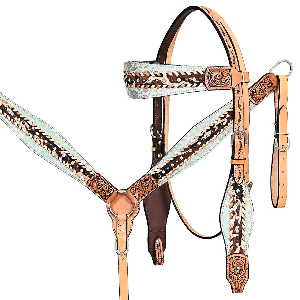 HILASON Western Horse Headstall Breast Collar Hairon Leather Tan