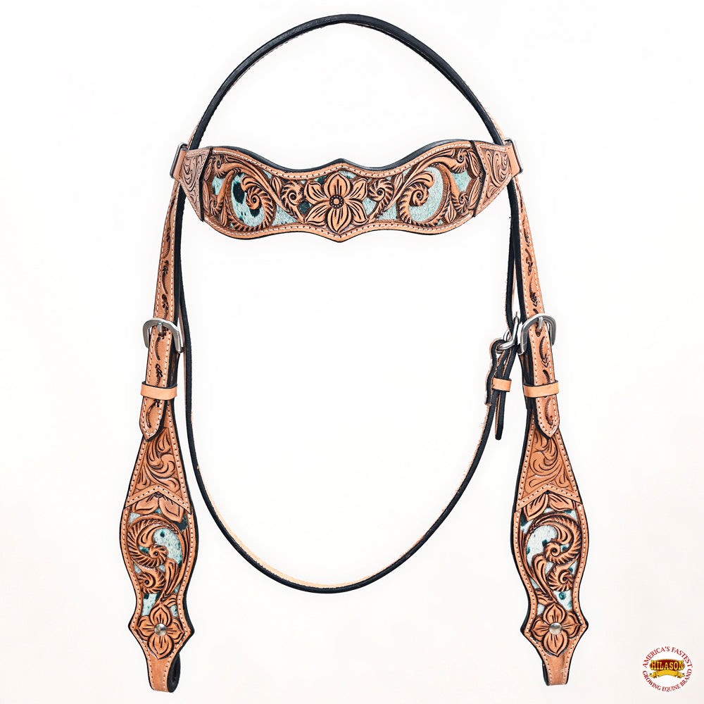 HILASON Western Horse Headstall Genuine American Leather Floral Tan