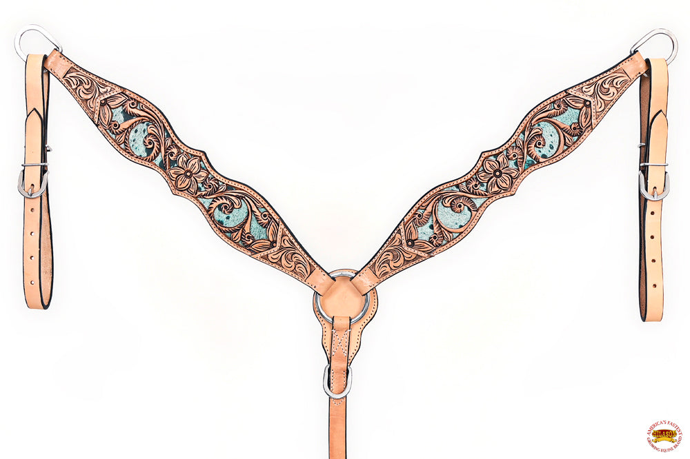 HILASON Western Horse Headstall Breast Collar Tack Set Genuine American Leather