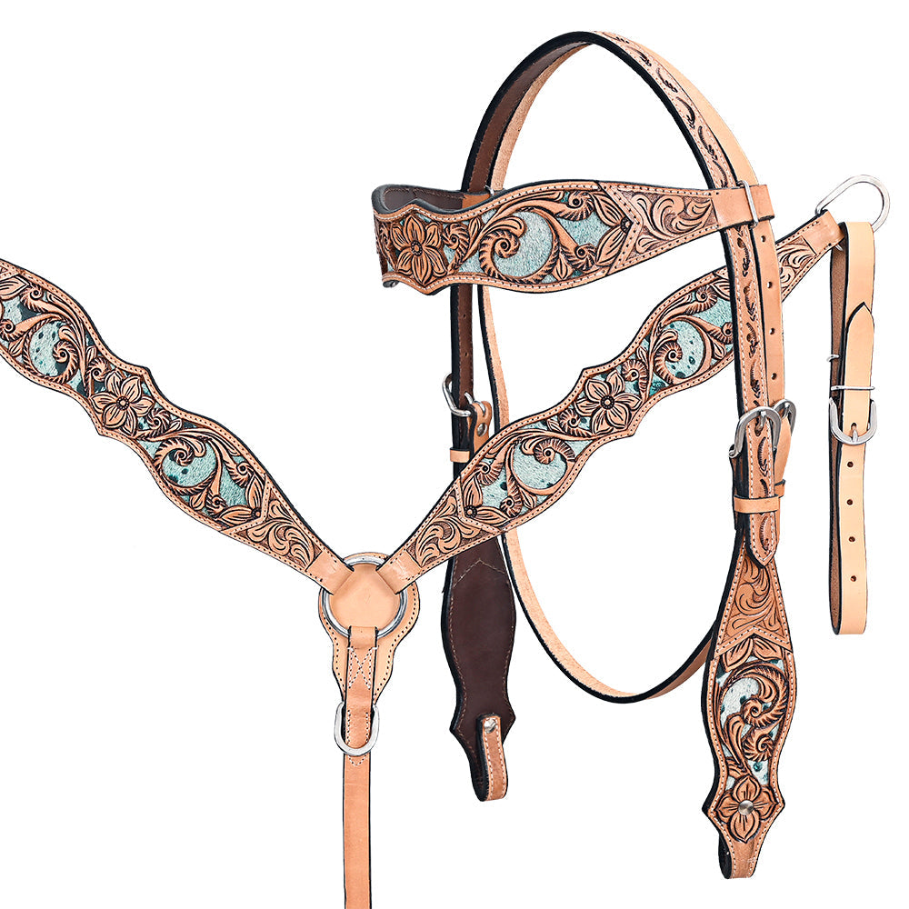 Bar H Equine Western Leather Horse Headstall & Breast Collar Brown