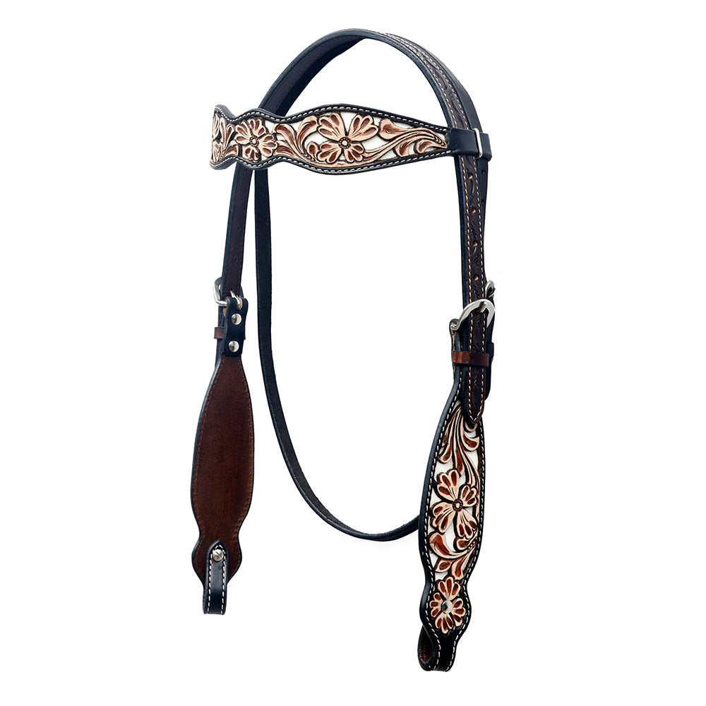 BAR H EQUINE Western Horse Floral Hand Painted Genuine Leather Headstall Tan