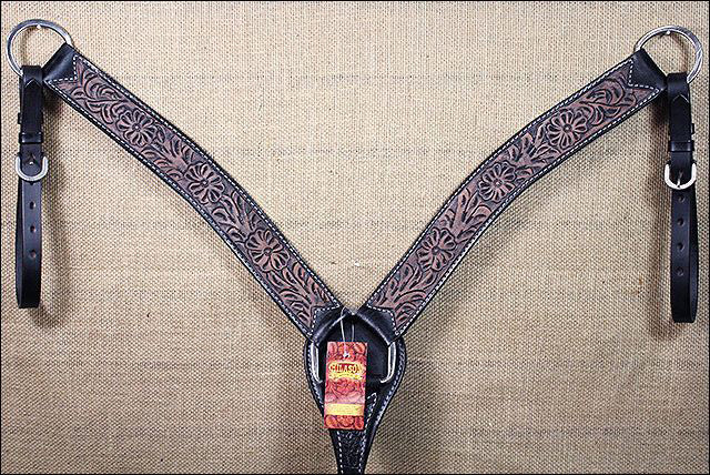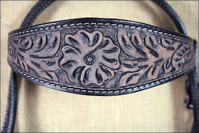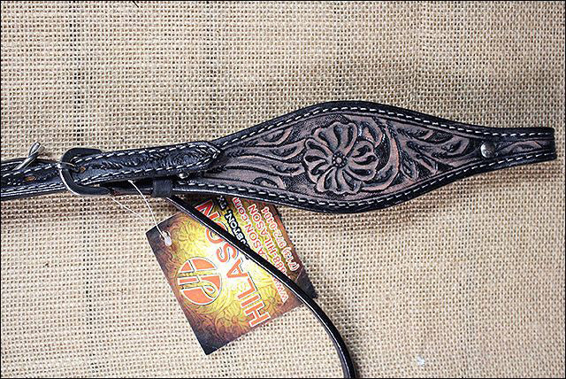 Hilason Horse Floral Hand Carved American Leather Breast Collar Headstall Dark Brown
