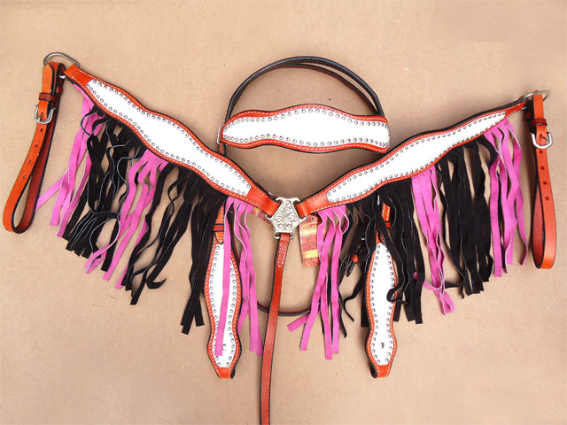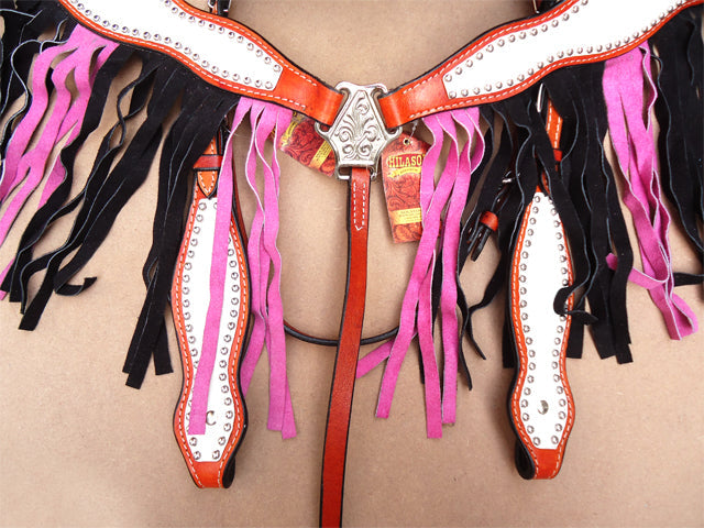 Hilason Western Headstall & Breast Collar Horse American Leather Black Pink
