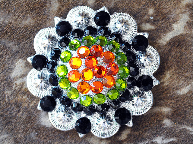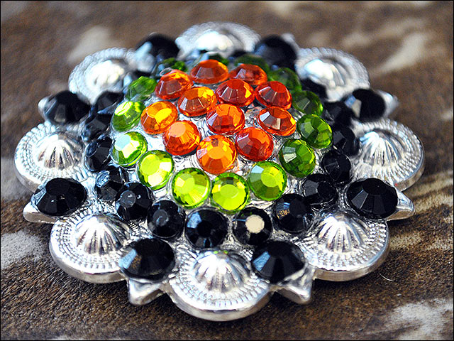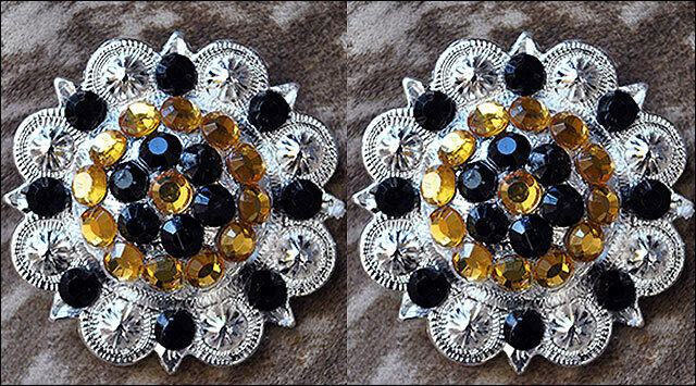 Western Screw Back 2 In Concho Black & Citrine Crystal Berry Saddle Bling