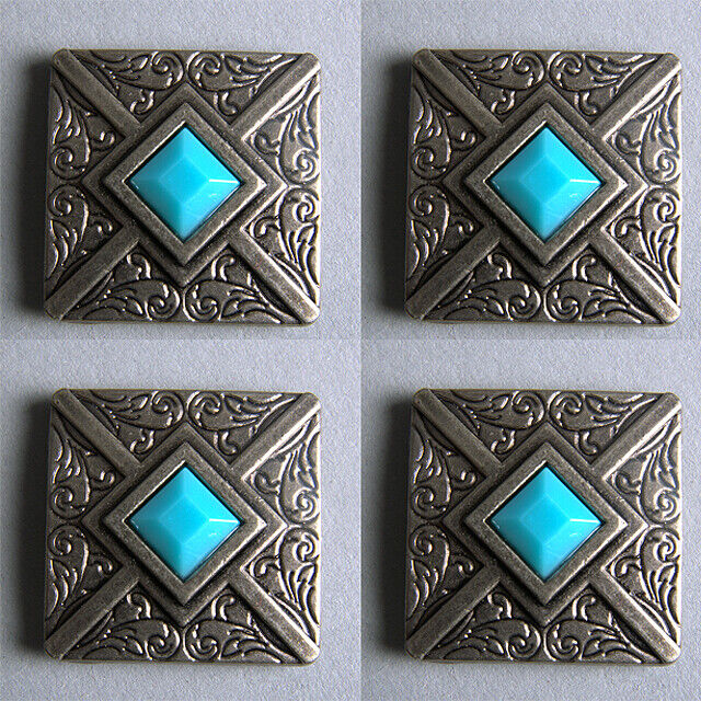 Western Screw Back Concho 1.25 In Antique Silver Turquoise Square Saddle