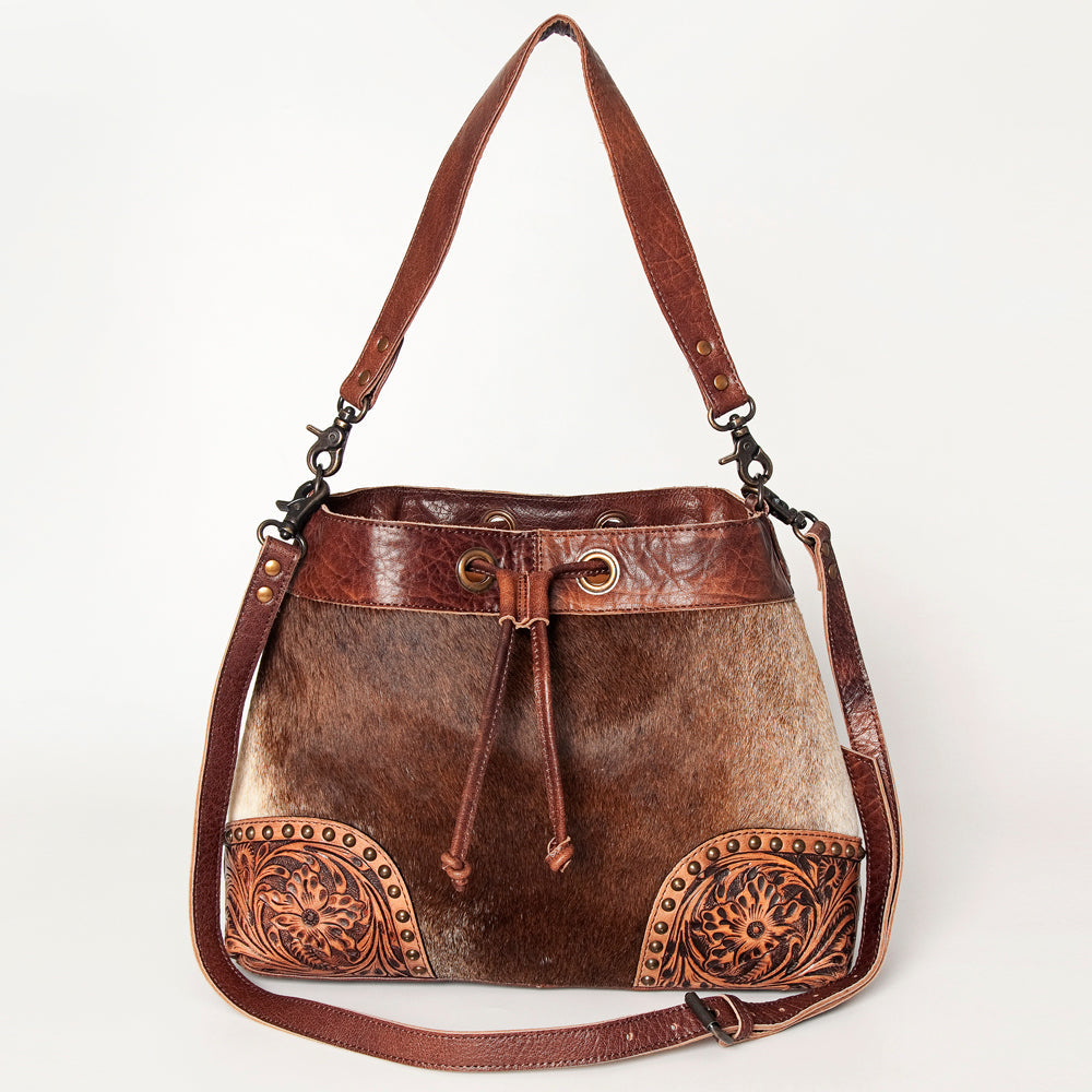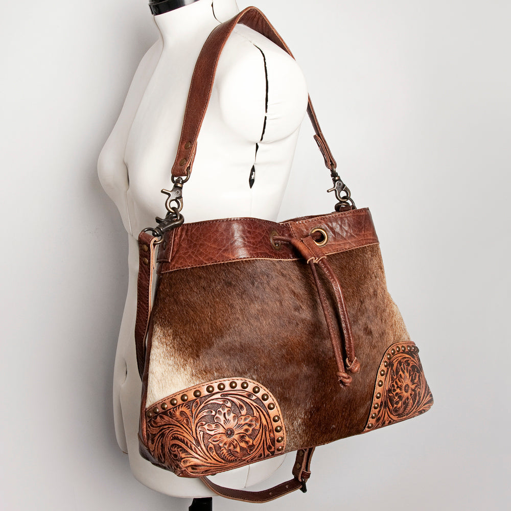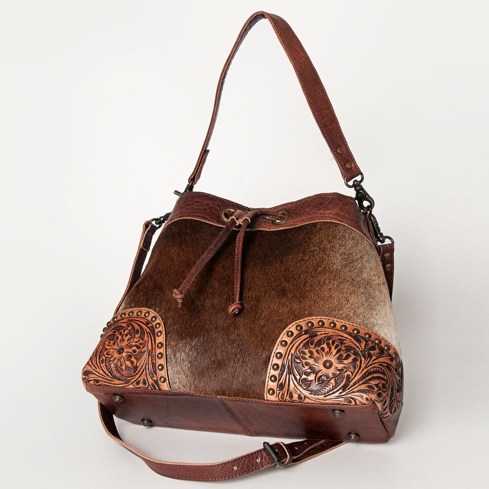 OHLAY MESSENGER Hand Tooled Hair-on Genuine Leather women bag western handbag purse