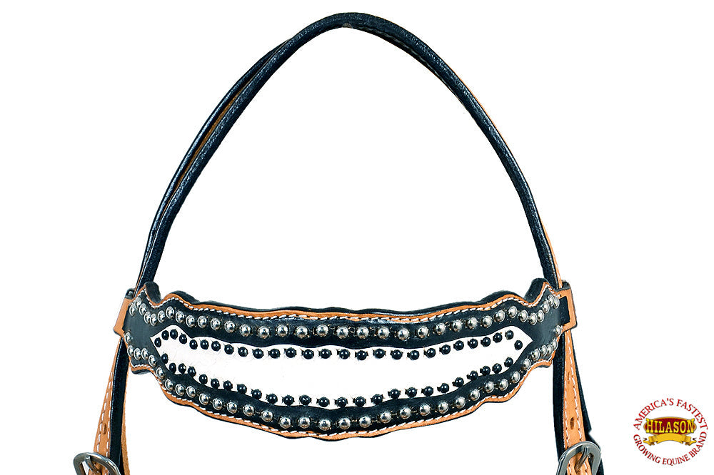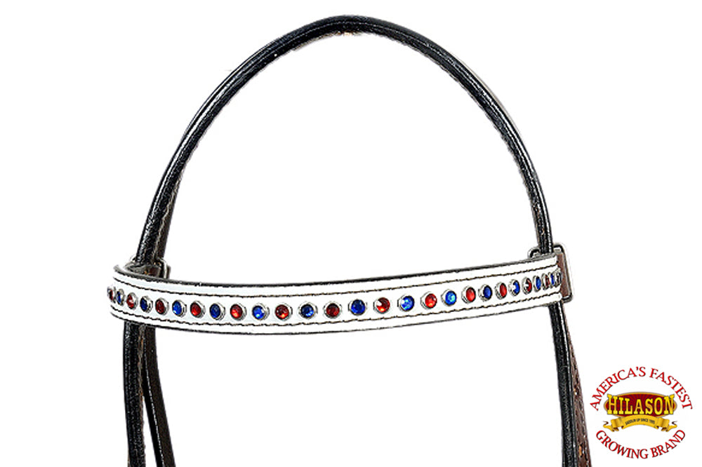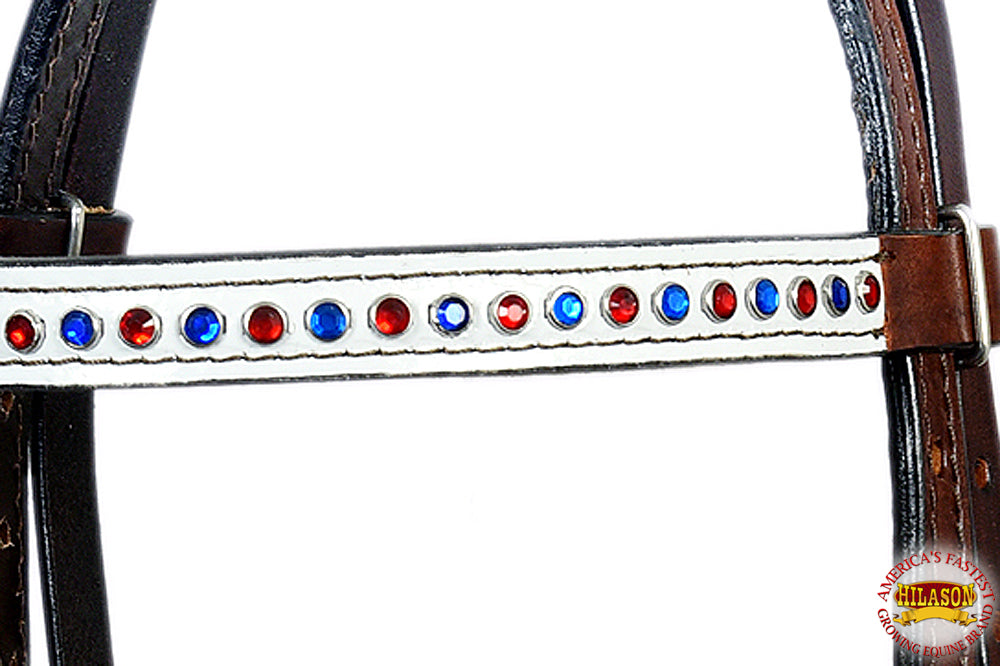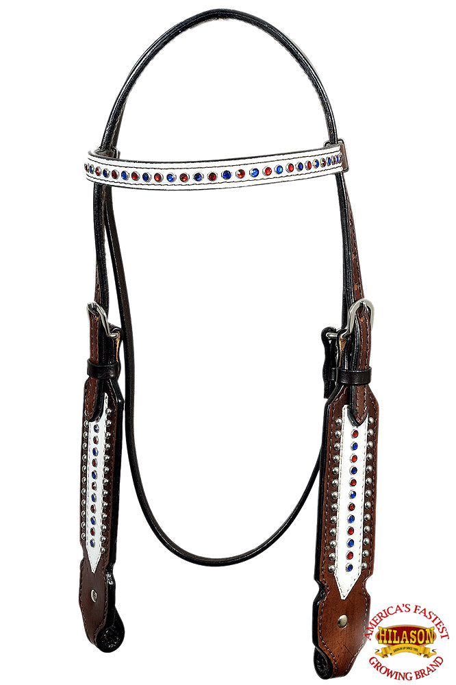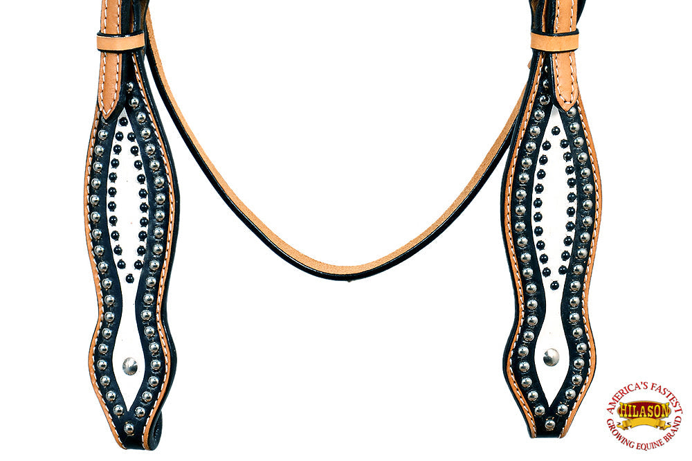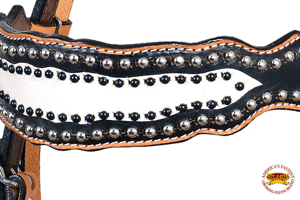 HILASON Western Horse Headstall Tack American Leather Tan W/ Black & White