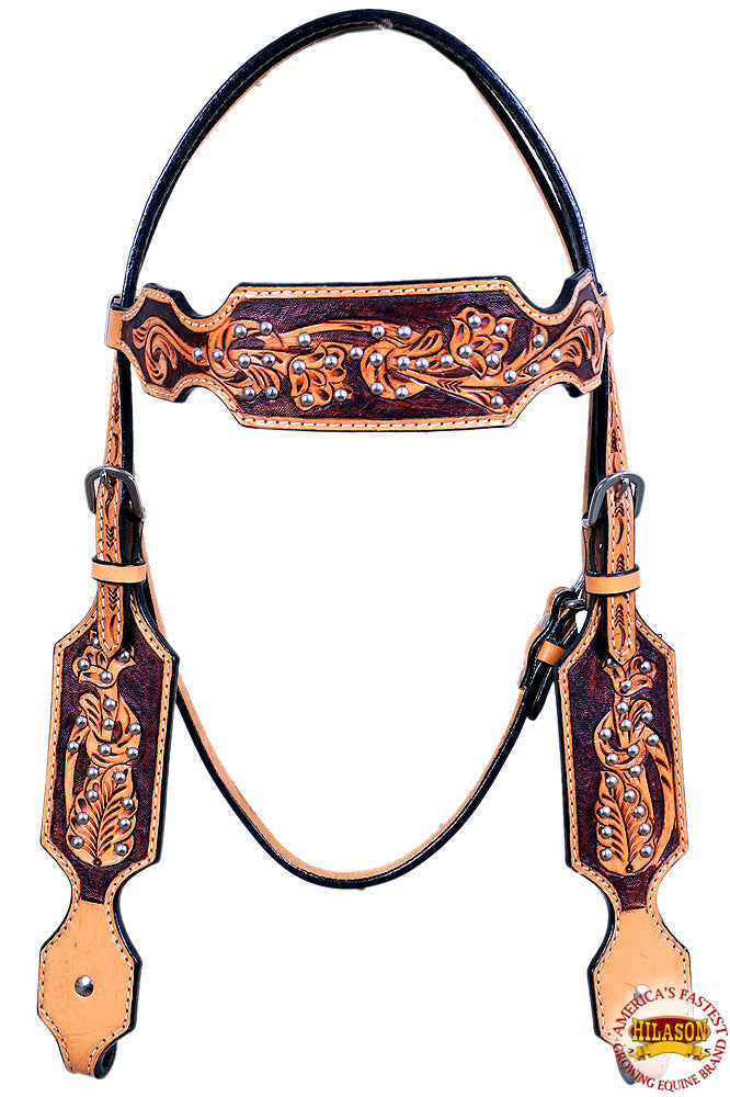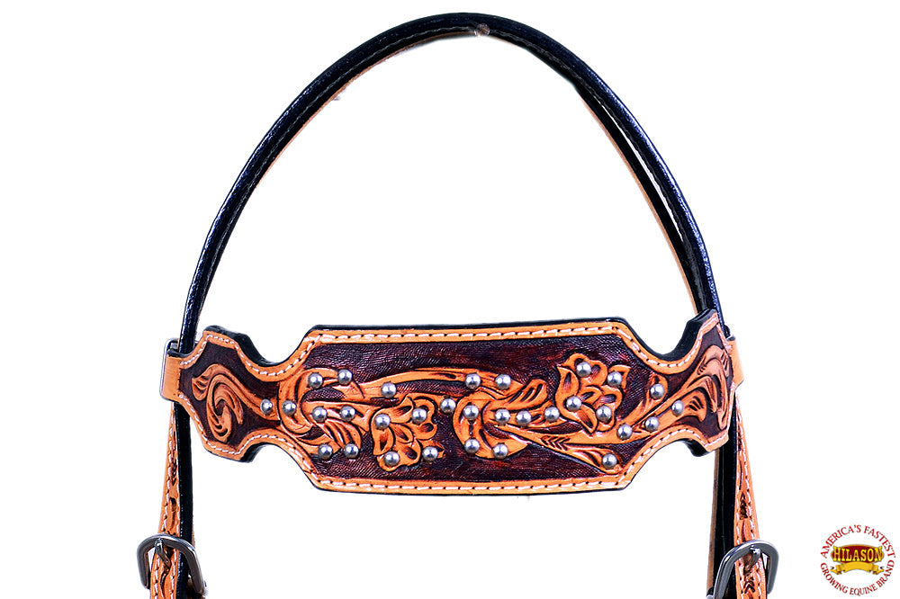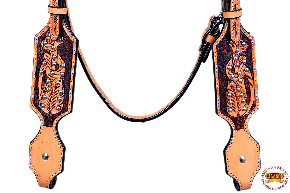 HILASON Western Horse American Leather Headstall Tack Mahogany