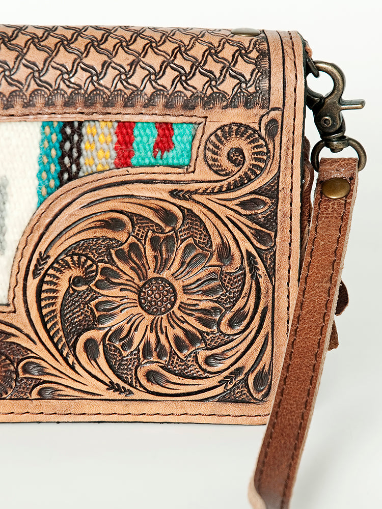 American Darling Clutch Hand Tooled Saddle Blanket Fabric Genuine Leather Western Women Bag Handbag Purse | Purses for Cute