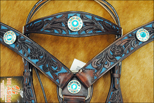 Hilason Western American Leather Horse Headstall Breast Collar Concho
