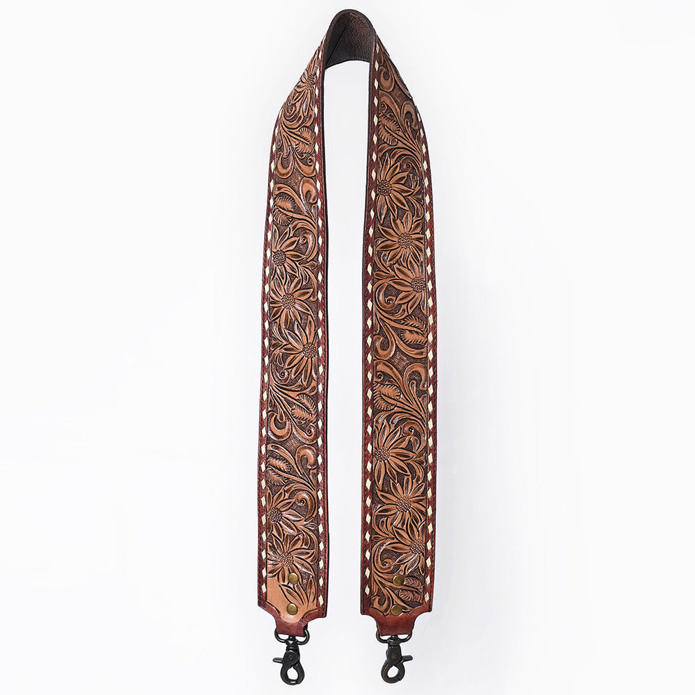 48 In American Darling Gorgeous Floral Hand Carved Genuine Leather Bag Strap With Flower Hand Tooled Design Brown Adbt147B