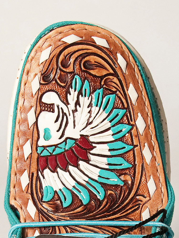 American Darling ADFT133PK13 Hand tooled carved genuine leather trim lightweight shoe footwear slip on