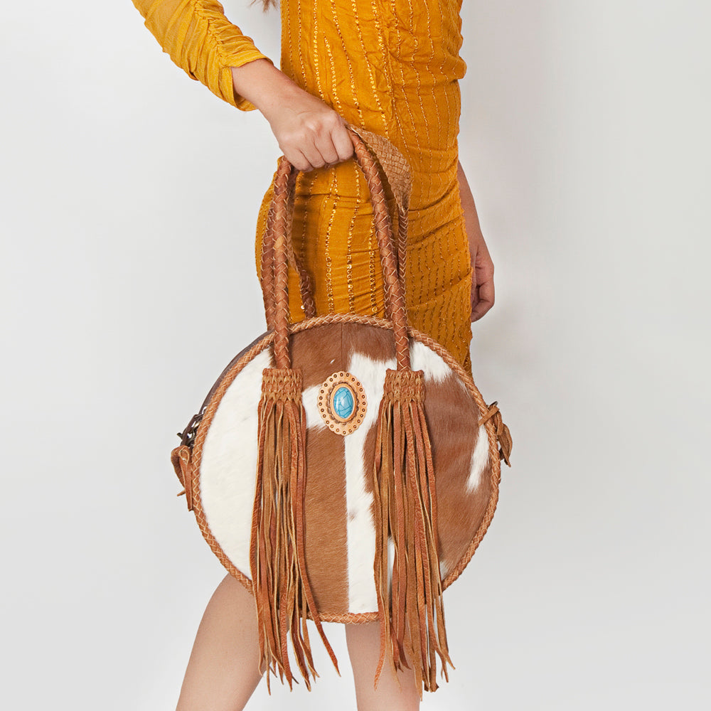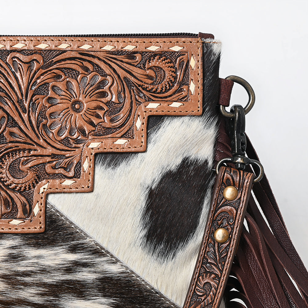 OHLAY KBG233 Cross Body Hand Tooled Hair-On Genuine Leather women bag western handbag purse