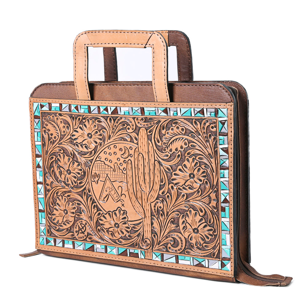 American Darling Briefcase Hand Tooled Genuine Leather Women Bag Western Handbag Purse