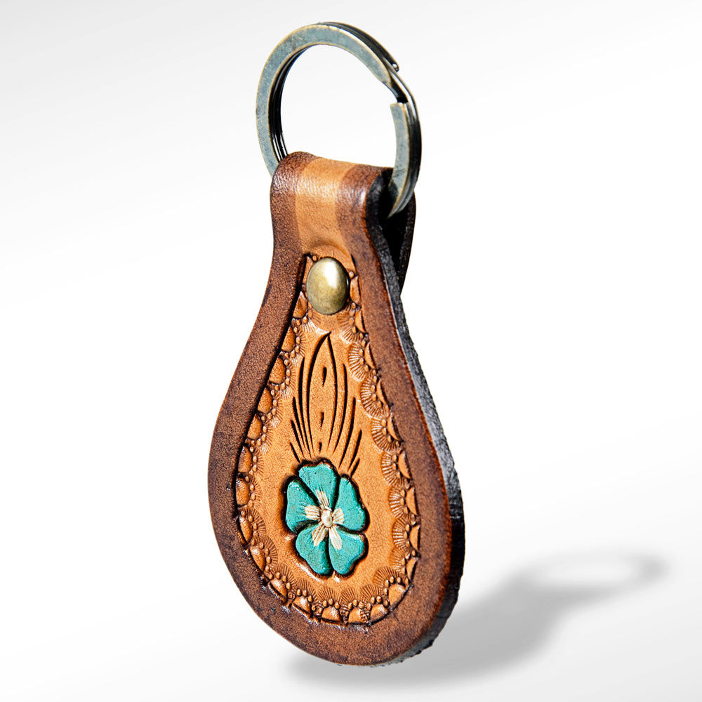 American Darling ADKR153 Hand Tooled Carved Genuine Leather Keyring