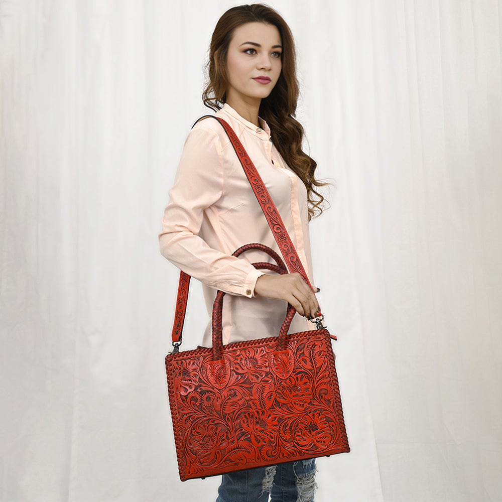 American Darling ADBG1412A Tote Hand Tooled Genuine Leather Women Bag Western Handbag Purse