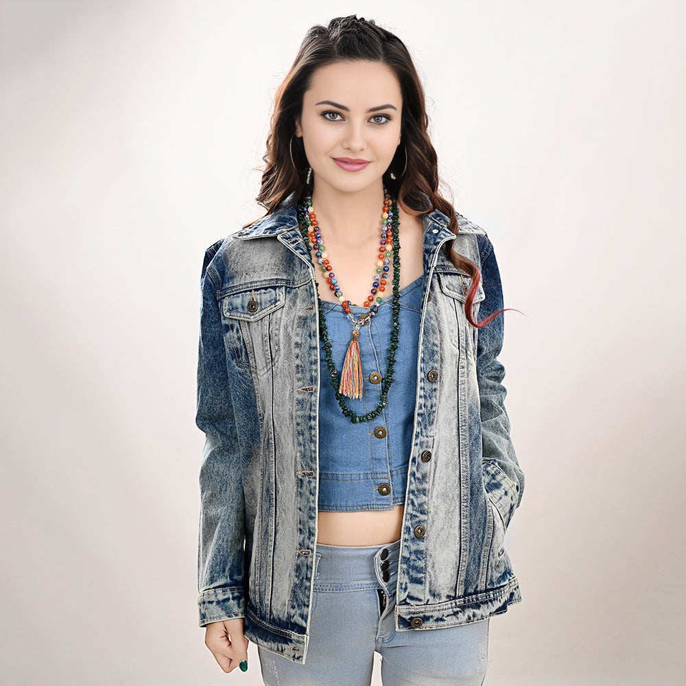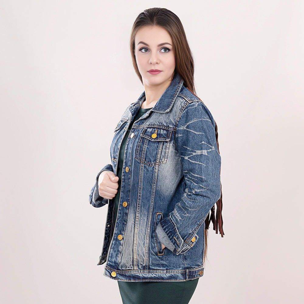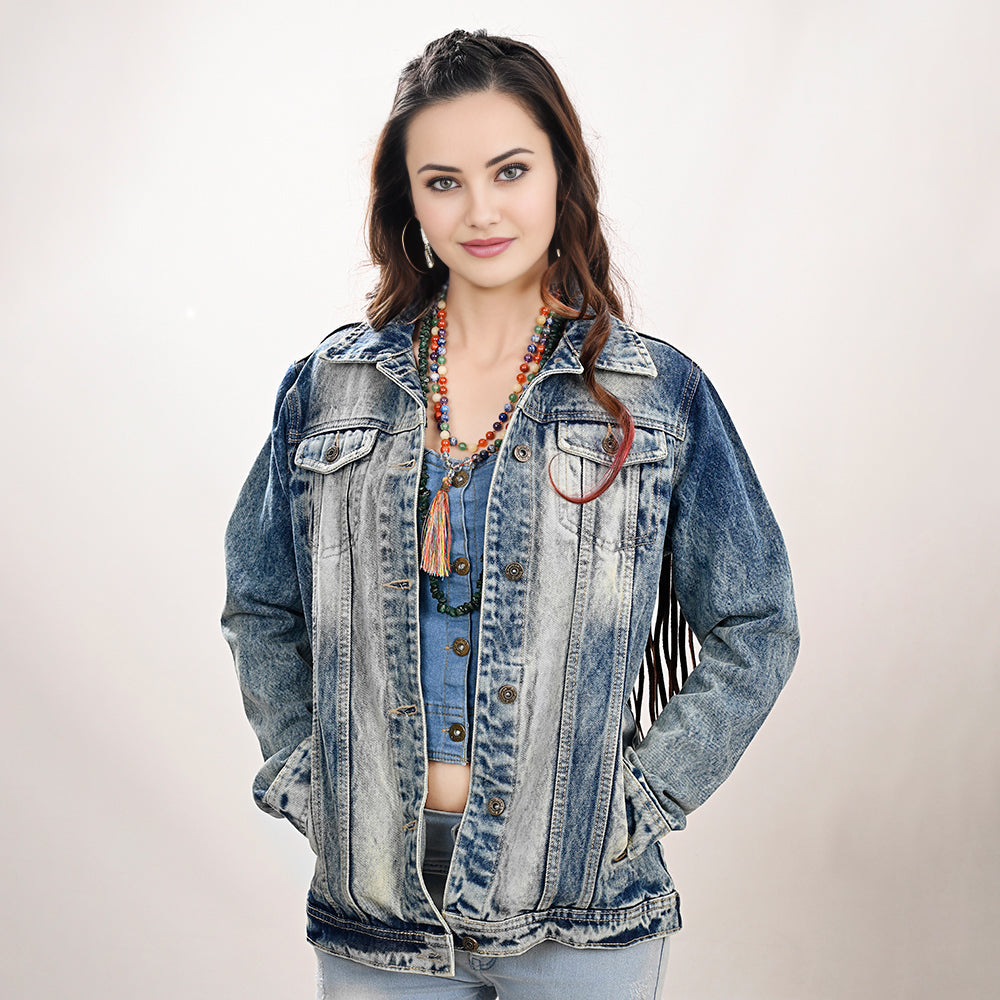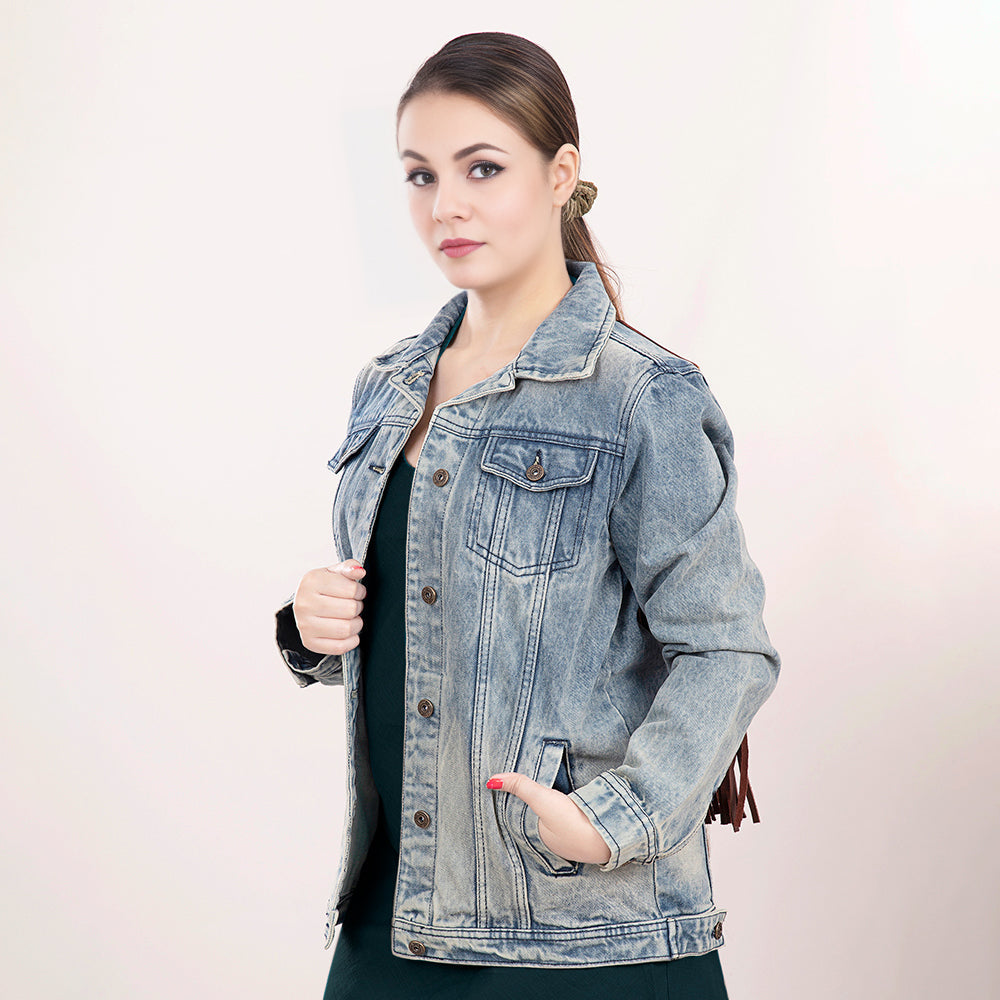 ADBZ702 Genuine leather Hand tooled hand carved Women 100% cotton Denim Blazer dress jacket ladies Girl