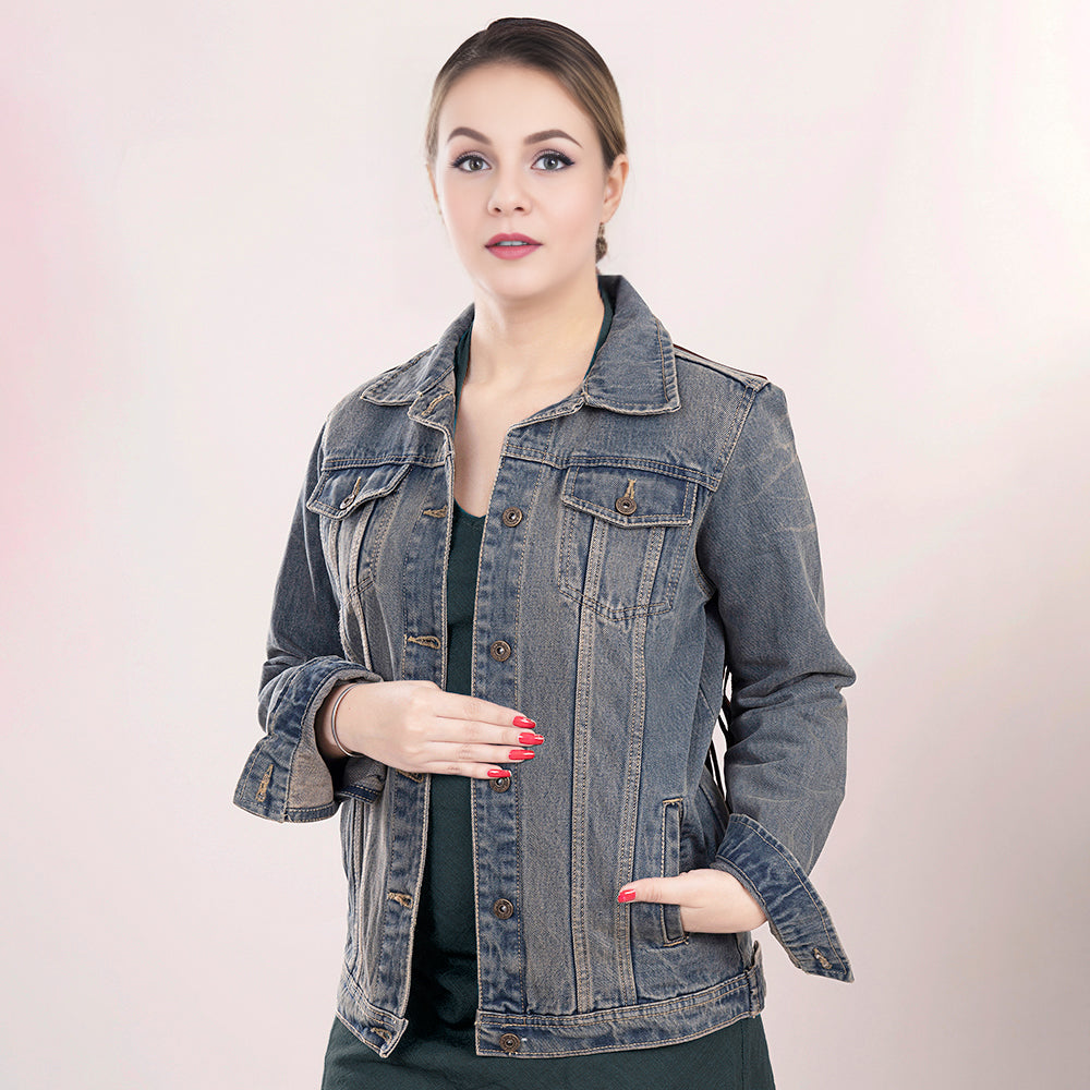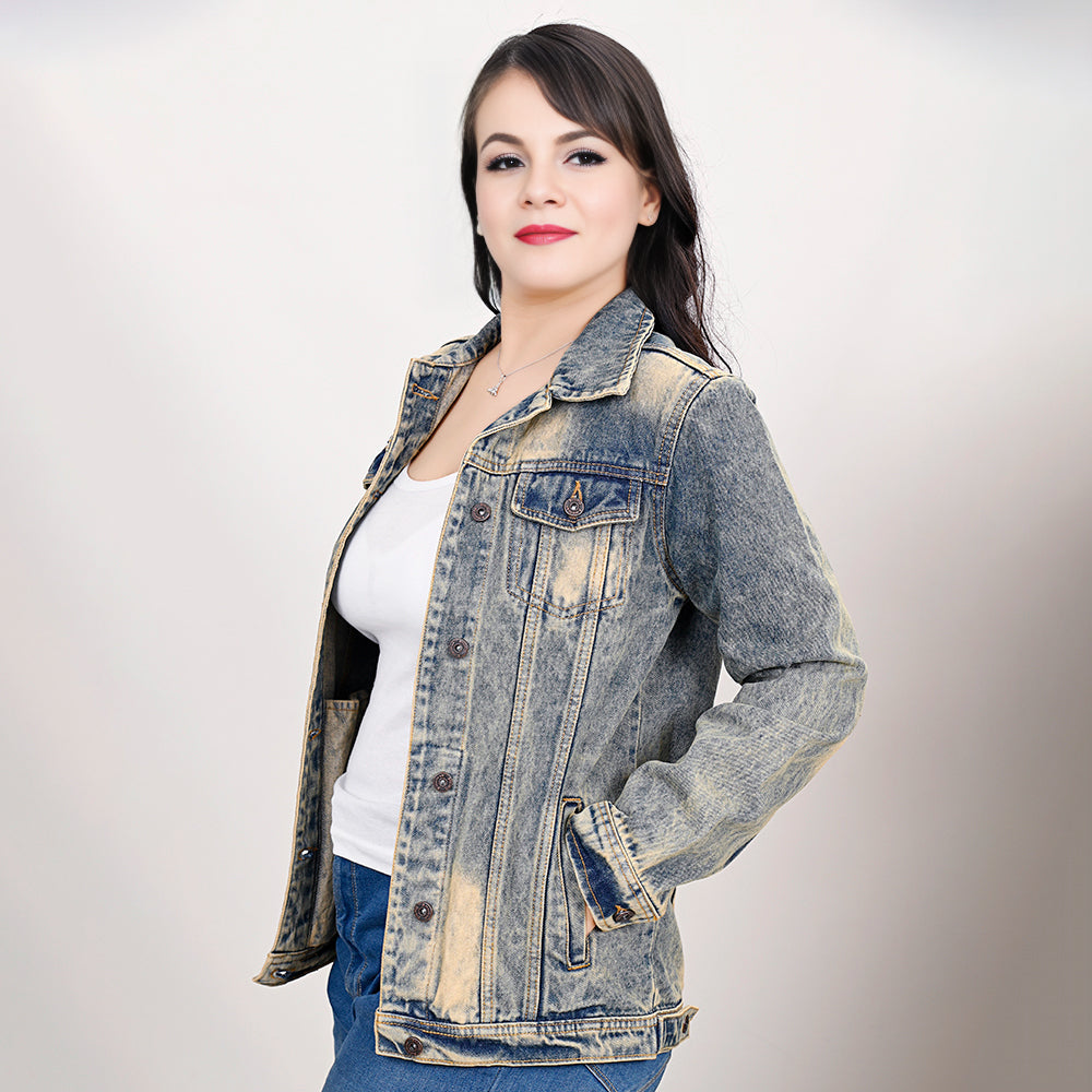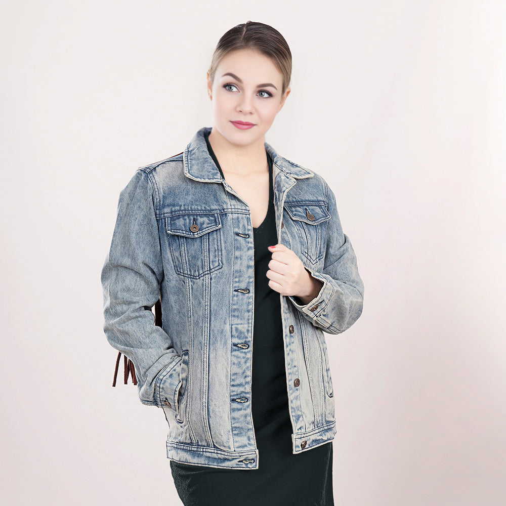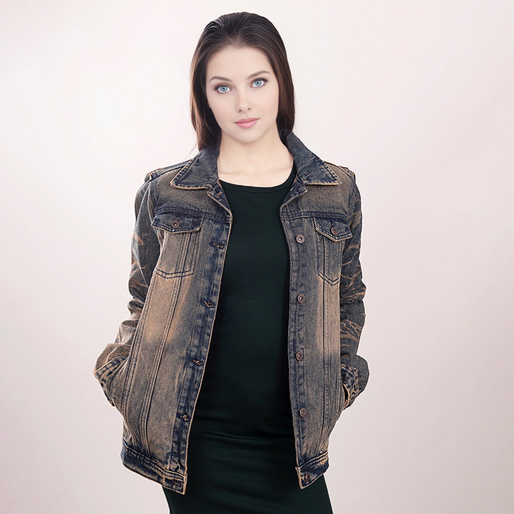 ADJKT007 Genuine leather Hand tooled hand carved Women 100% cotton Denim jacket dress ladies girl