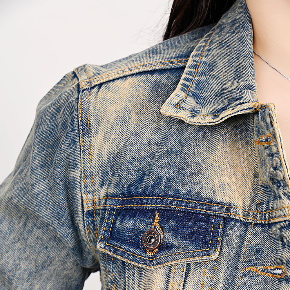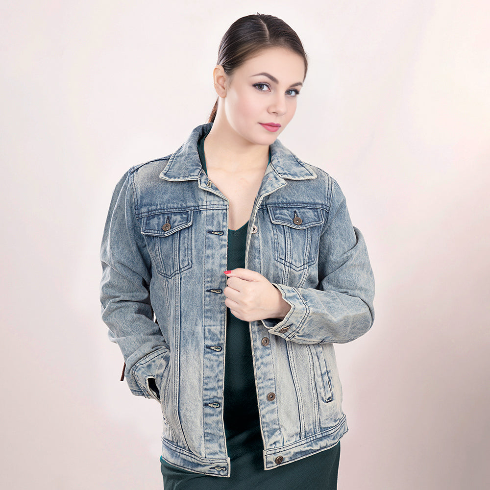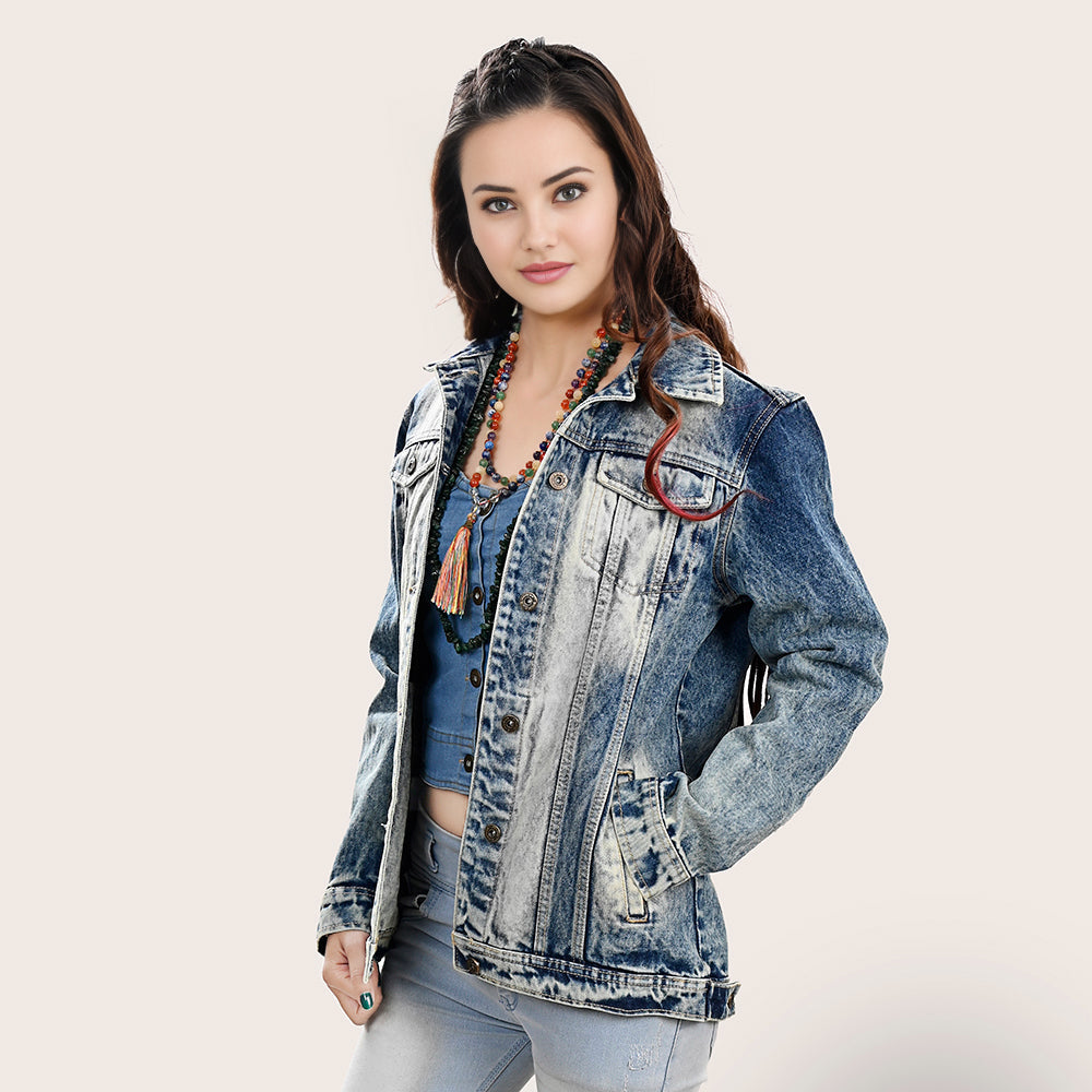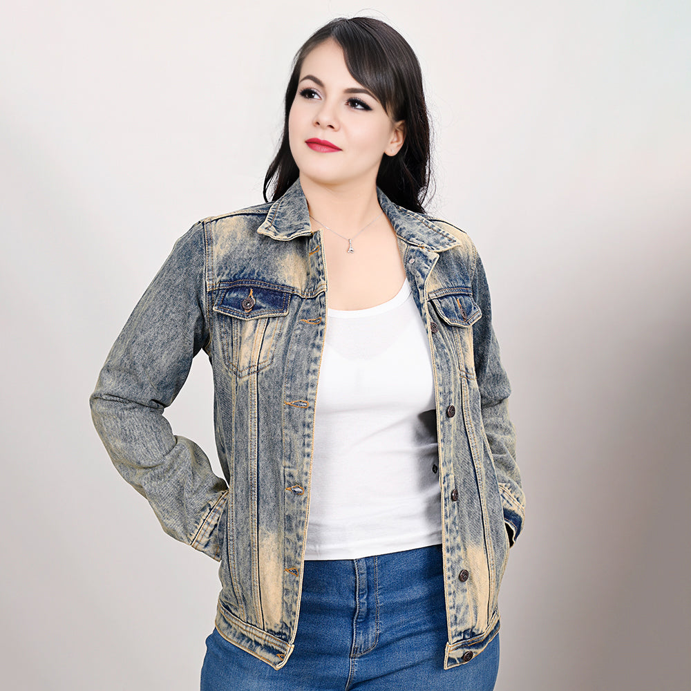 ADJKT007 Genuine leather Hand tooled hand carved Women 100% cotton Denim jacket dress ladies girl