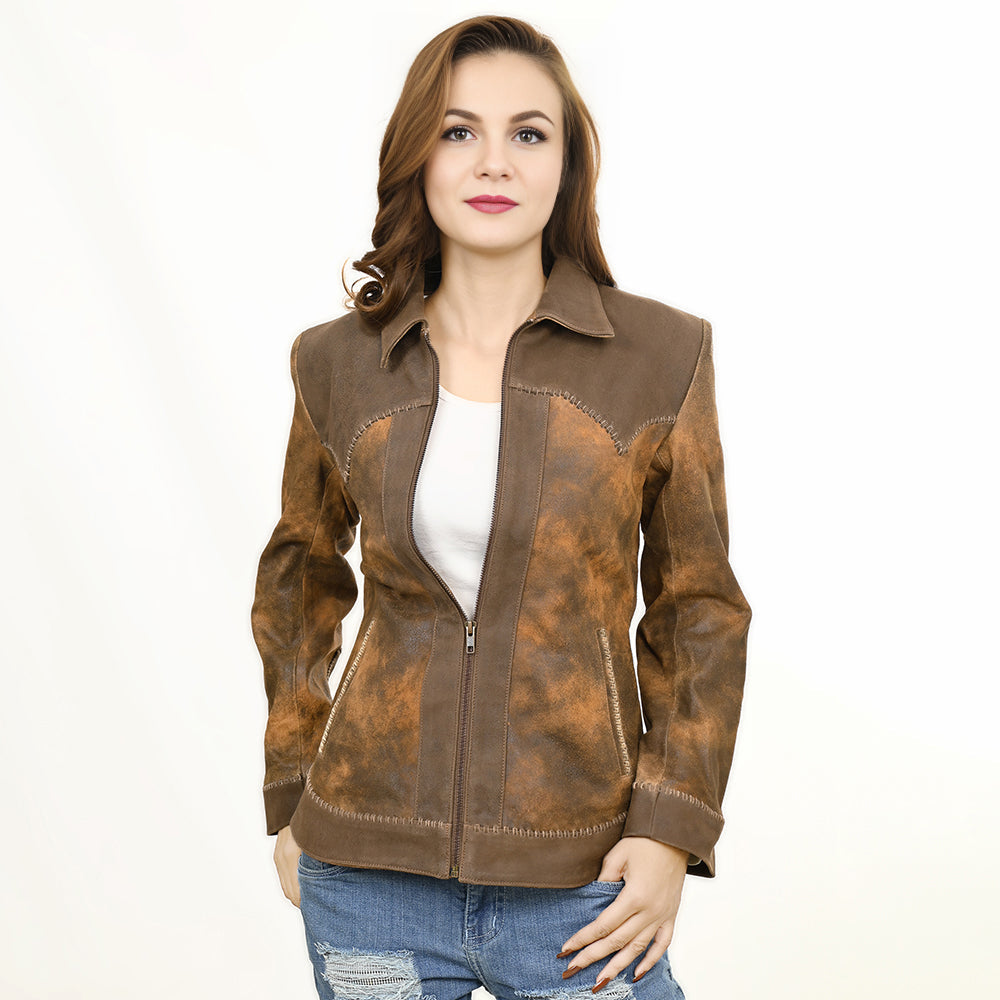 ADBZ705 Genuine leather Hand tooled hand carved Women Blazer dress jacket ladies Girl