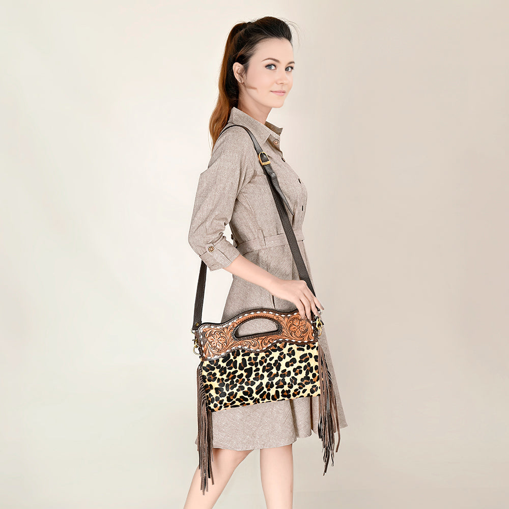 Ohlay Bags OHA113 Clutch Hand Tooled Hair-On Genuine Leather Women Bag Western Handbag Purse