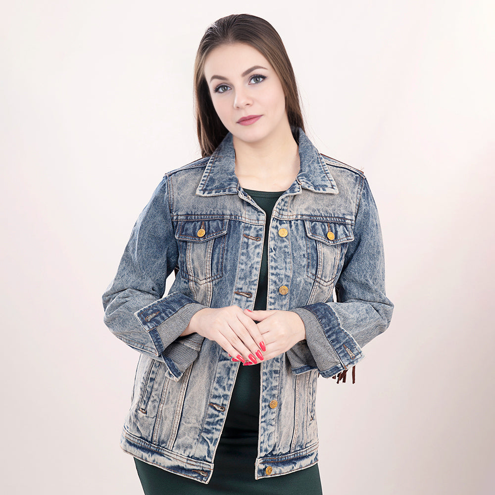 ADJKT006 Genuine leather Hand tooled hand carved Women 100% cotton Denim jacket dress ladies girl