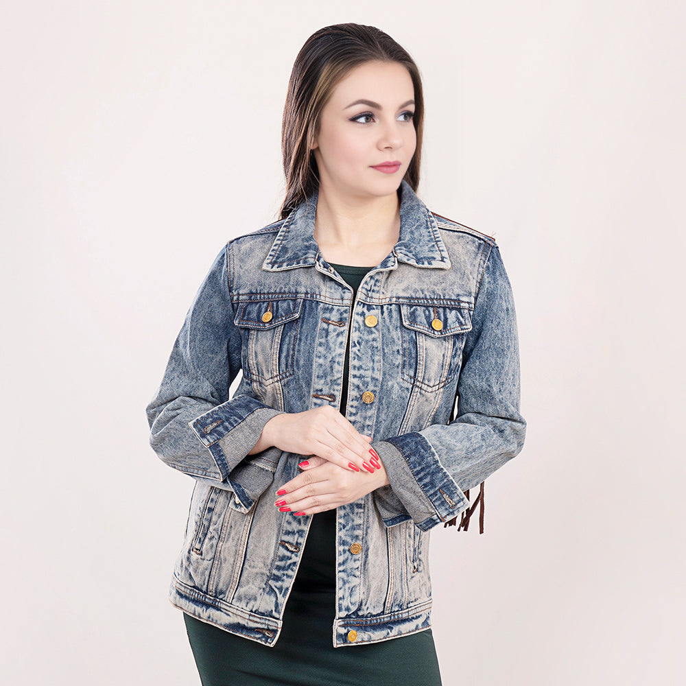 ADJKT010 Genuine leather Hand tooled hand carved Women 100% cotton Denim jacket dress ladies girl