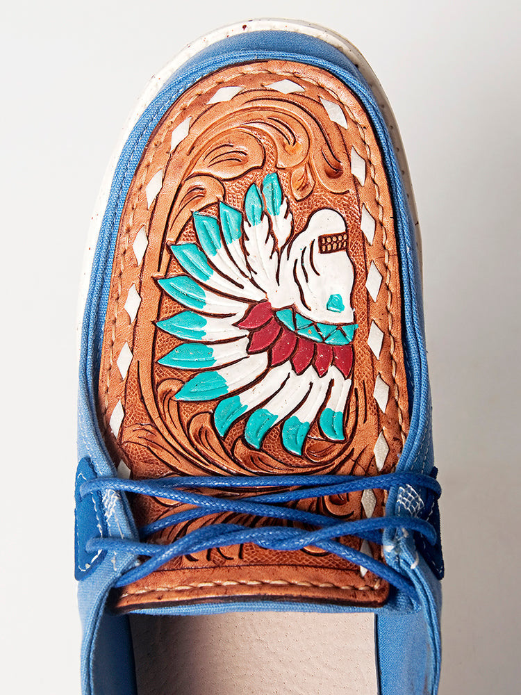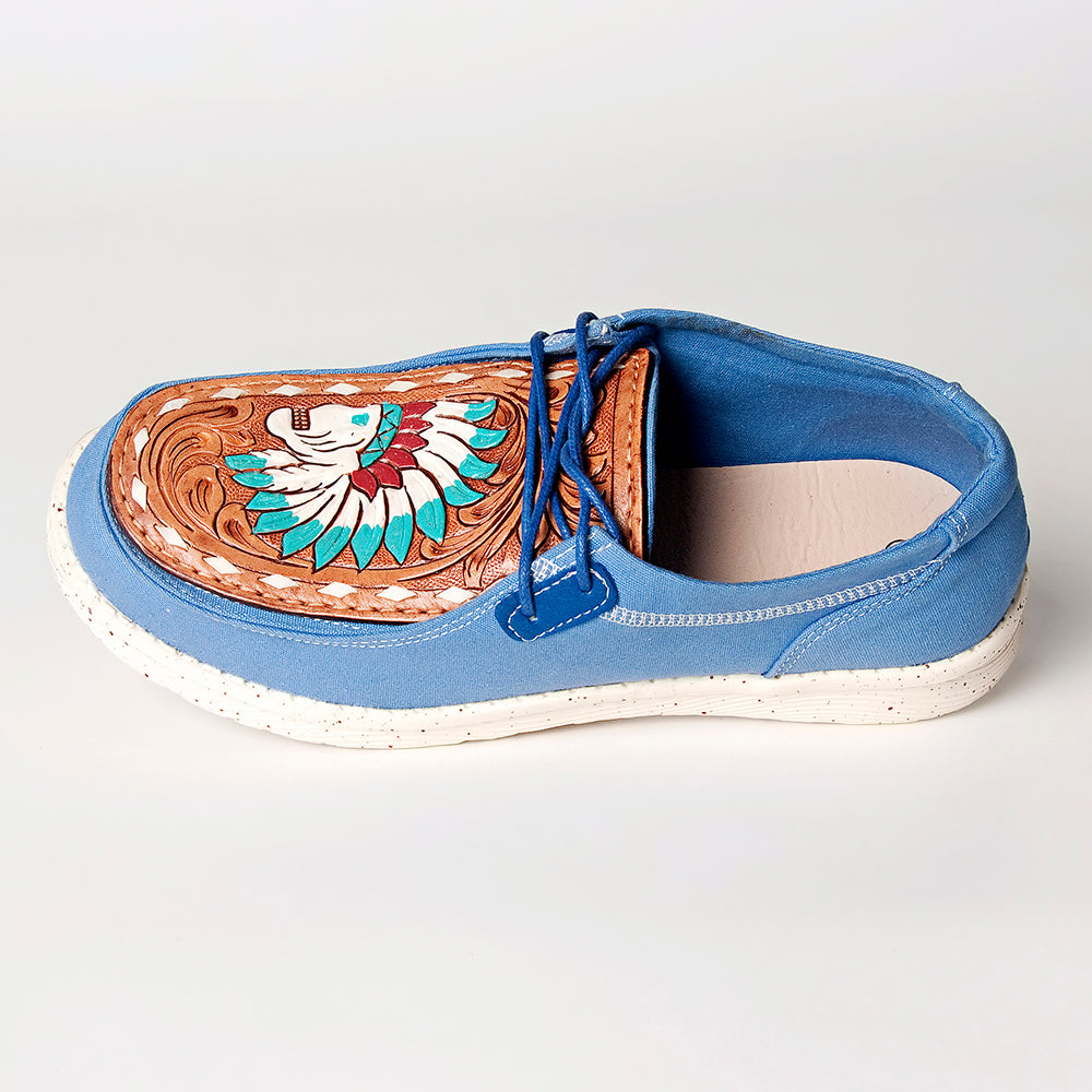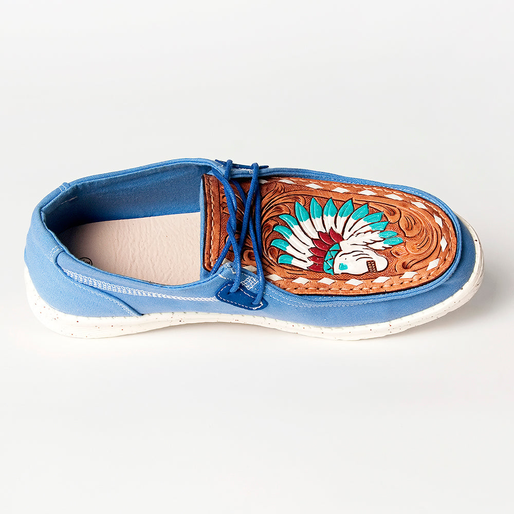 American Darling ADFT133BL1 Hand tooled carved genuine leather trim lightweight shoe footwear slip on