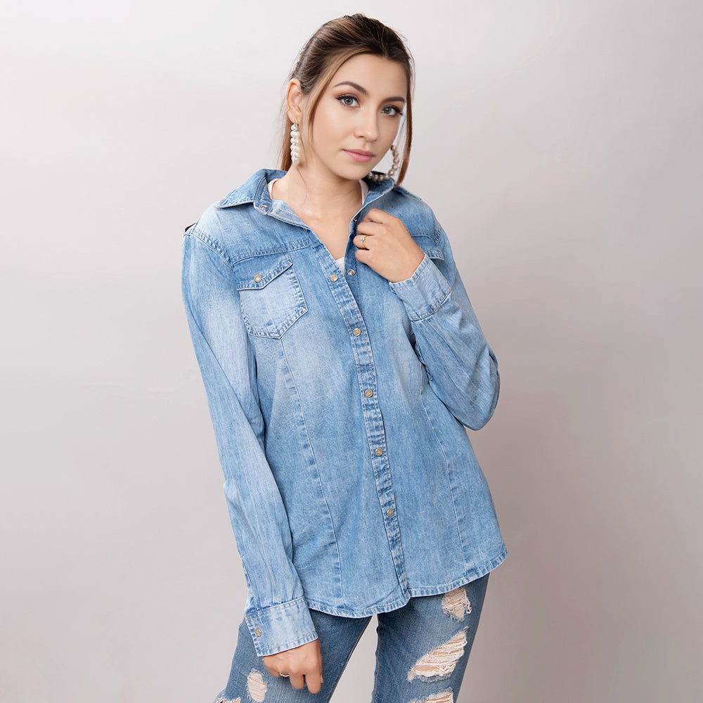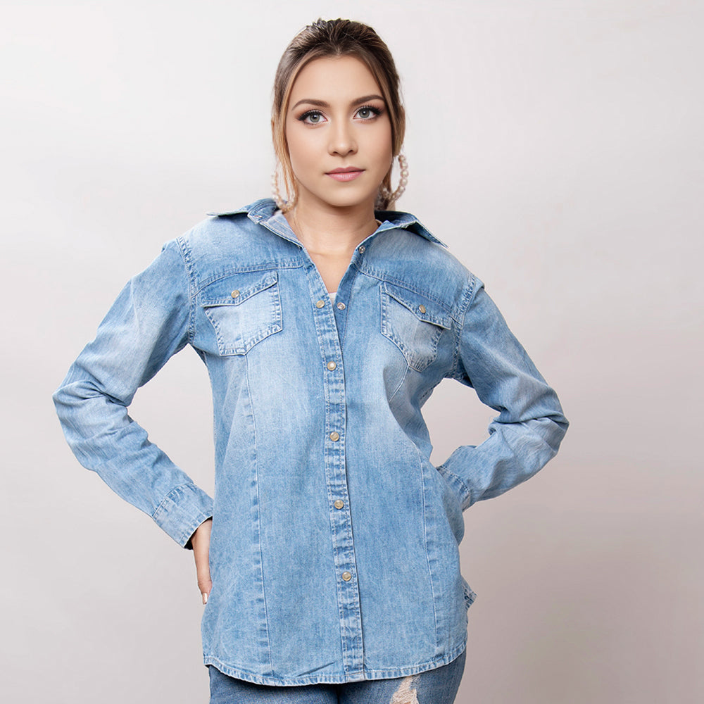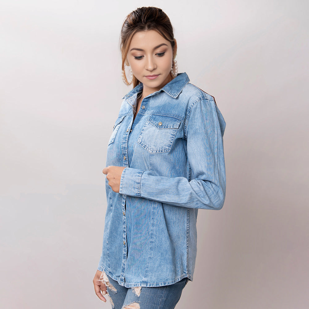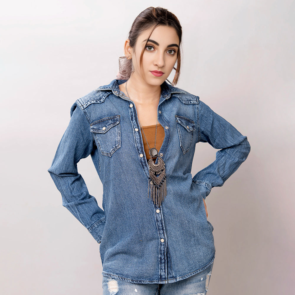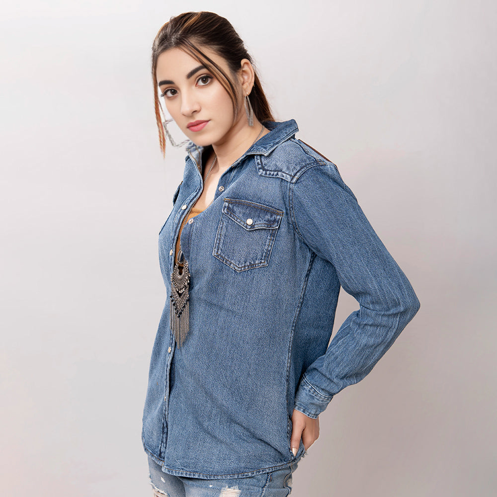 American Darling Leather Hand Tooled Carved Women Denim Shirt Jacket