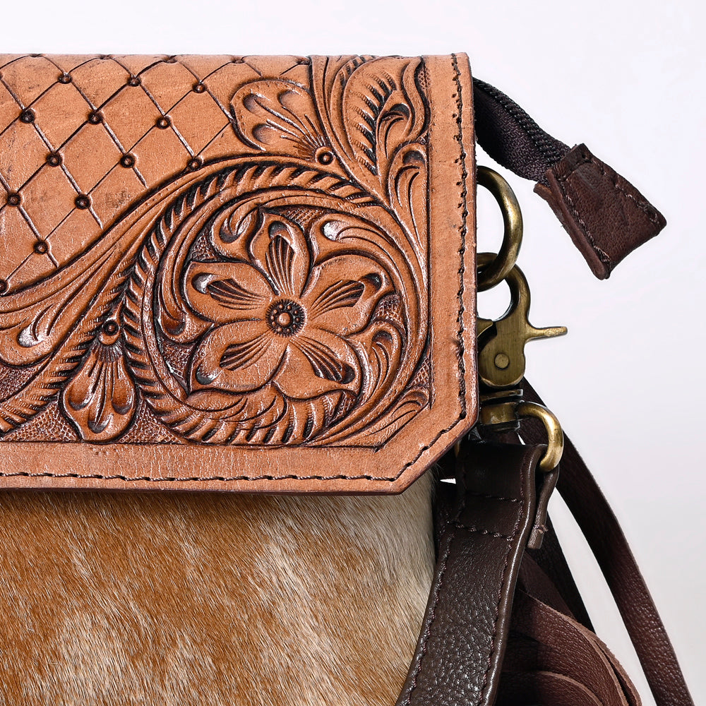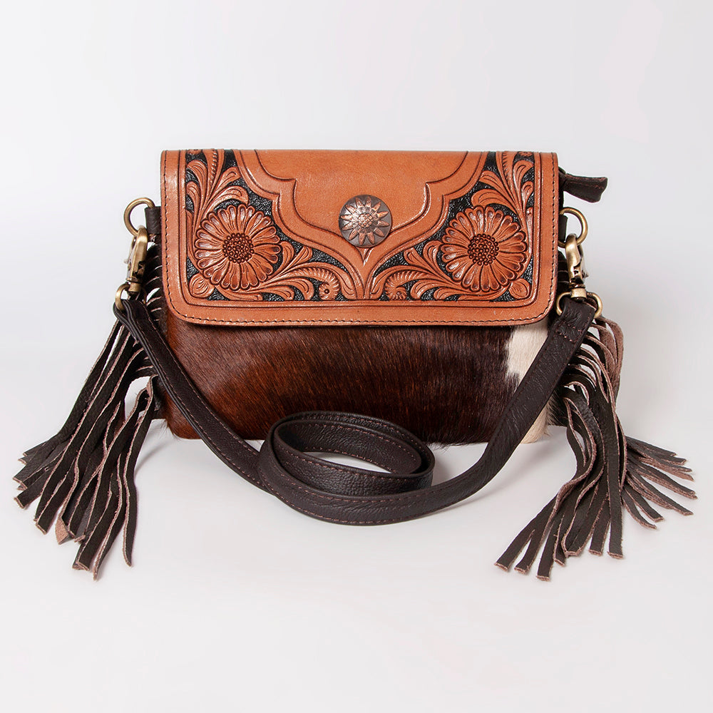 American Darling ADBG508BRW Small Crossbody Hair-On Genuine Leather Women Bag Western Handbag Purse