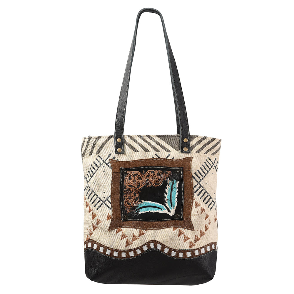 Ohlay Bags OHV154 Tote Upcycled Canvas Genuine Leather Women Bag Western Handbag Purse
