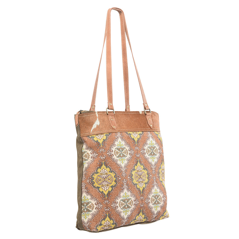 OHLAY KB612 TOTE Upcycled Canvas Embossed Hair-on Genuine Leather women bag western handbag purse