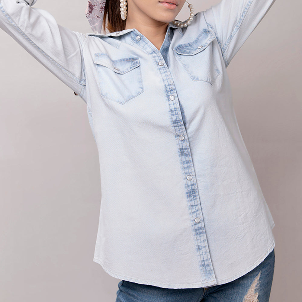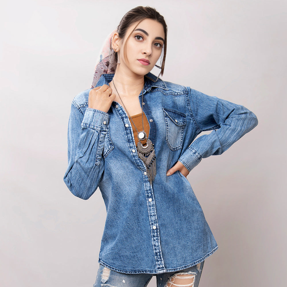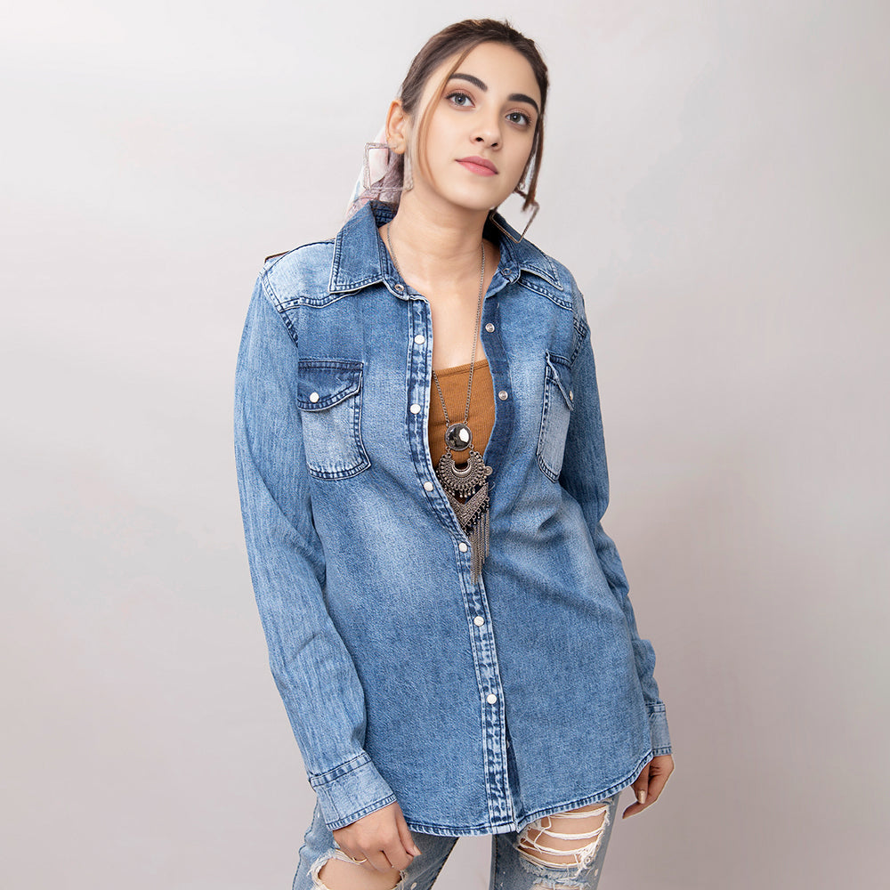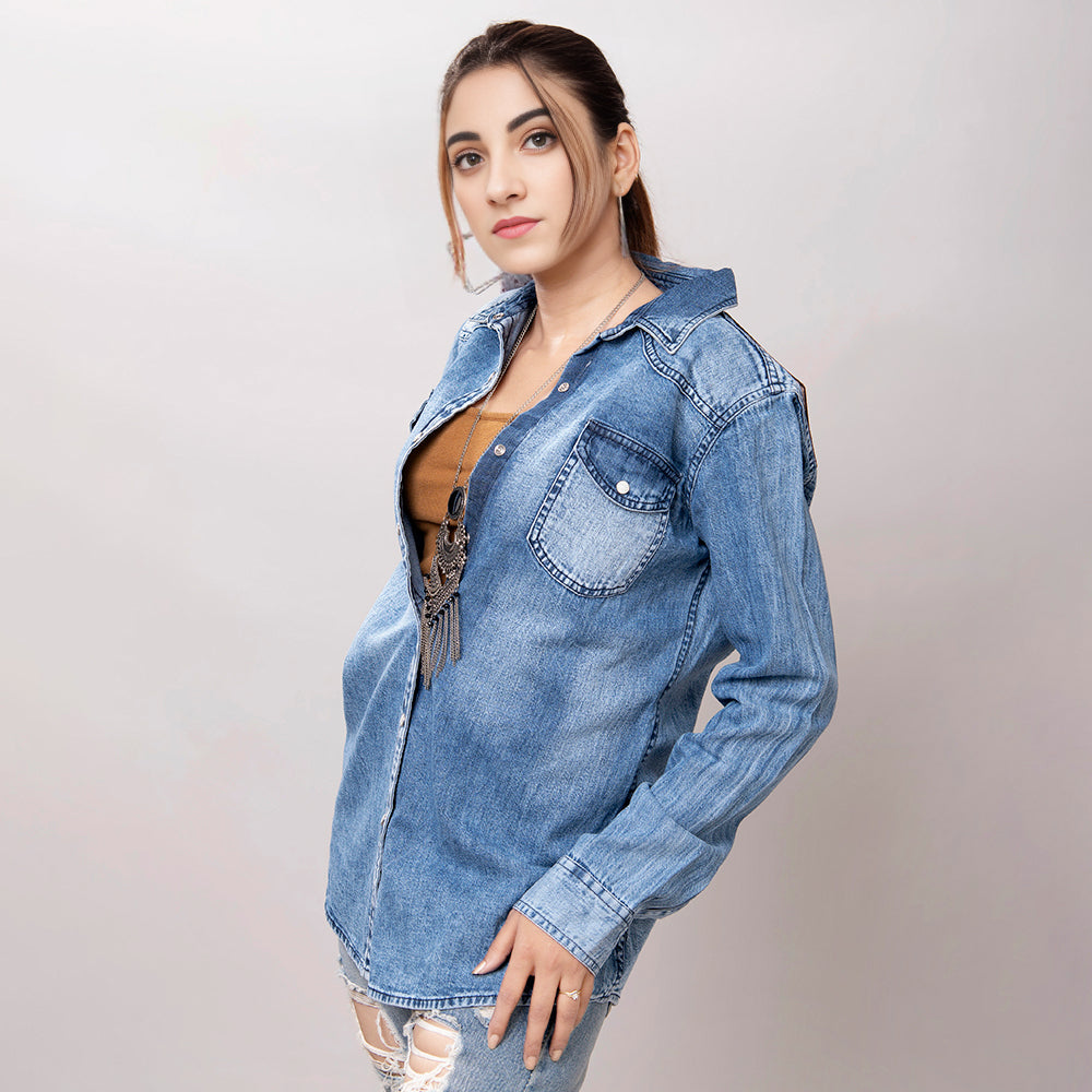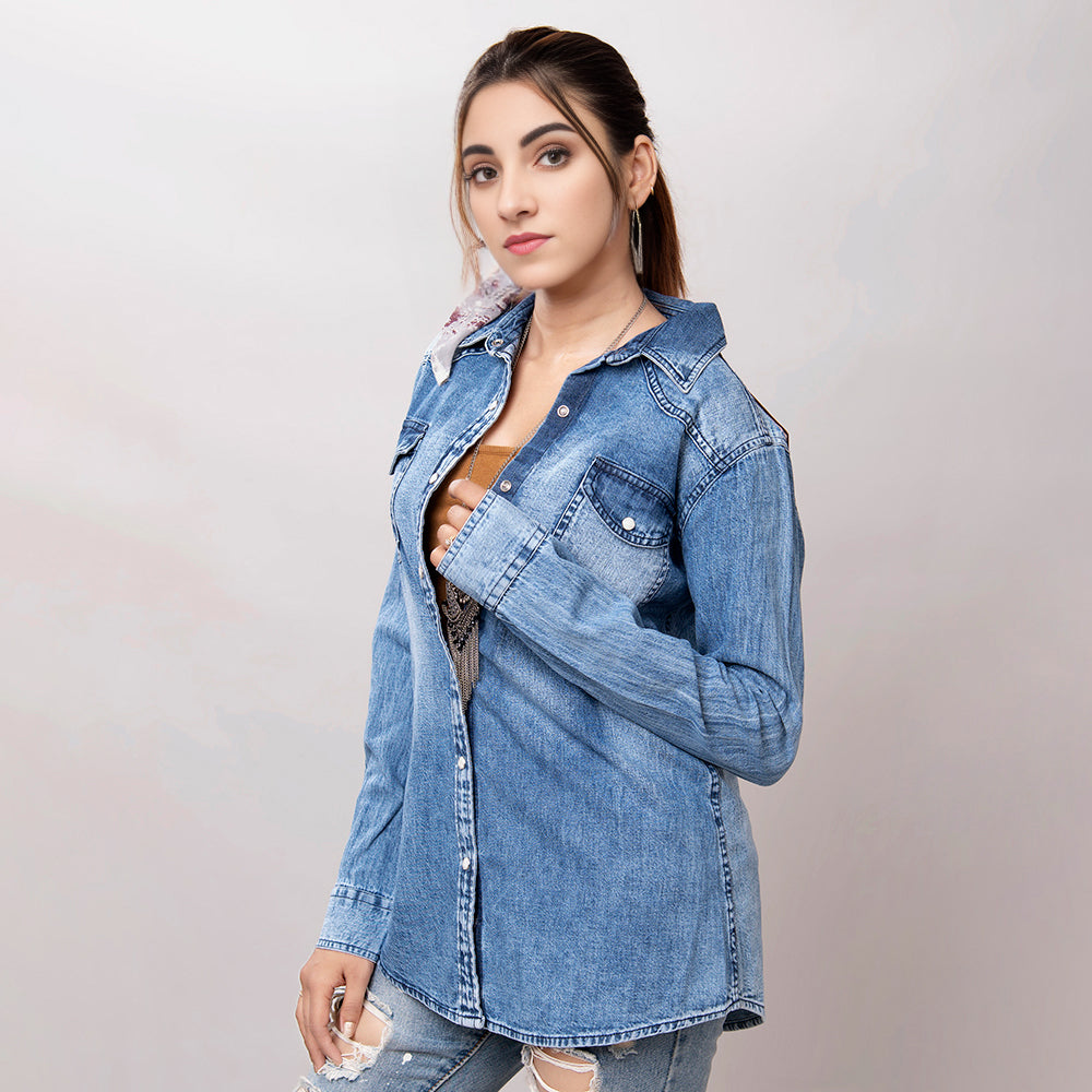 American Darling Leather Hand Tooled Carved Women Denim Shirt Jacket