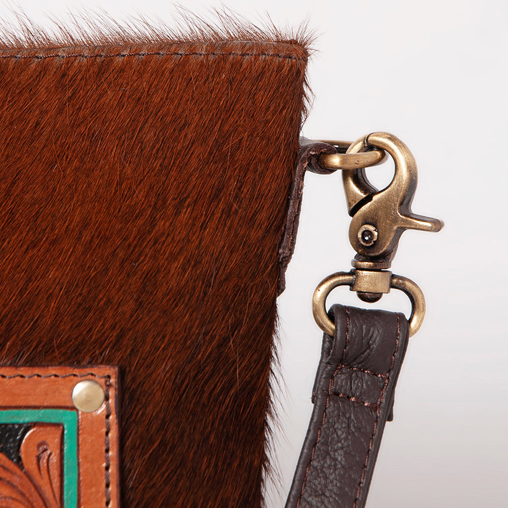 American Darling ADBG805 Clutch Hand Tooled Hair-On Genuine Leather Women Bag Western Handbag Purse