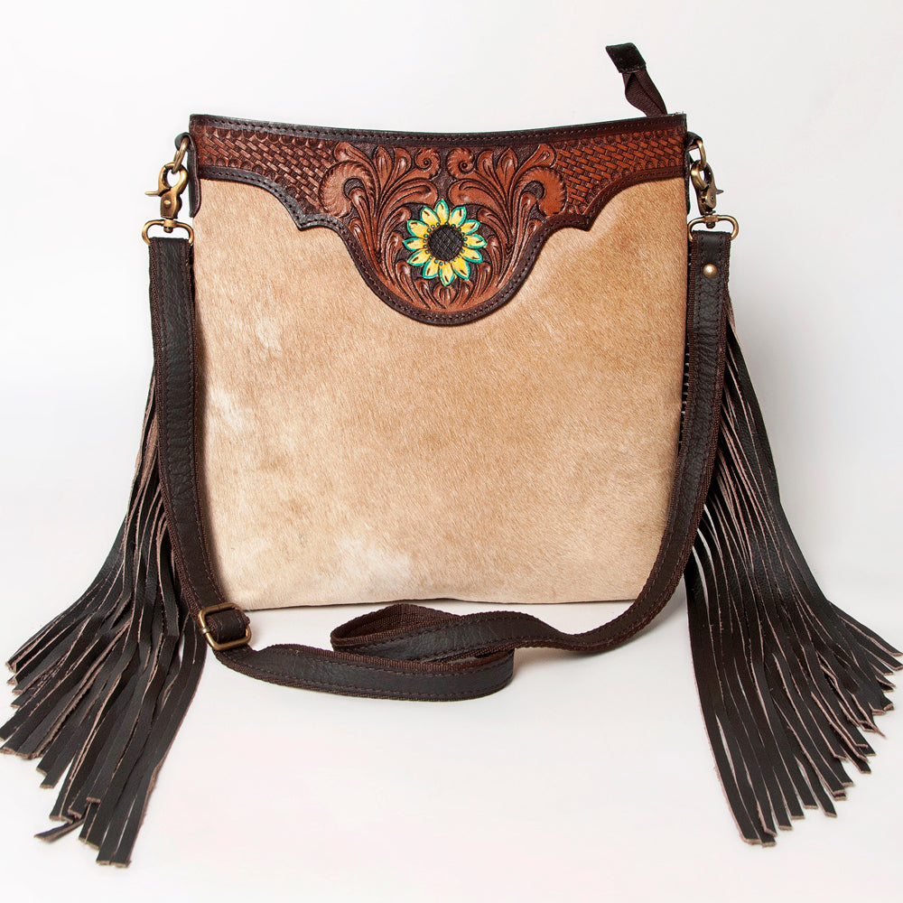 American Darling Adbg1485 Cross Body I Hand Tooled Hair-On Genuine Leather Women Bag Western Handbag Purse