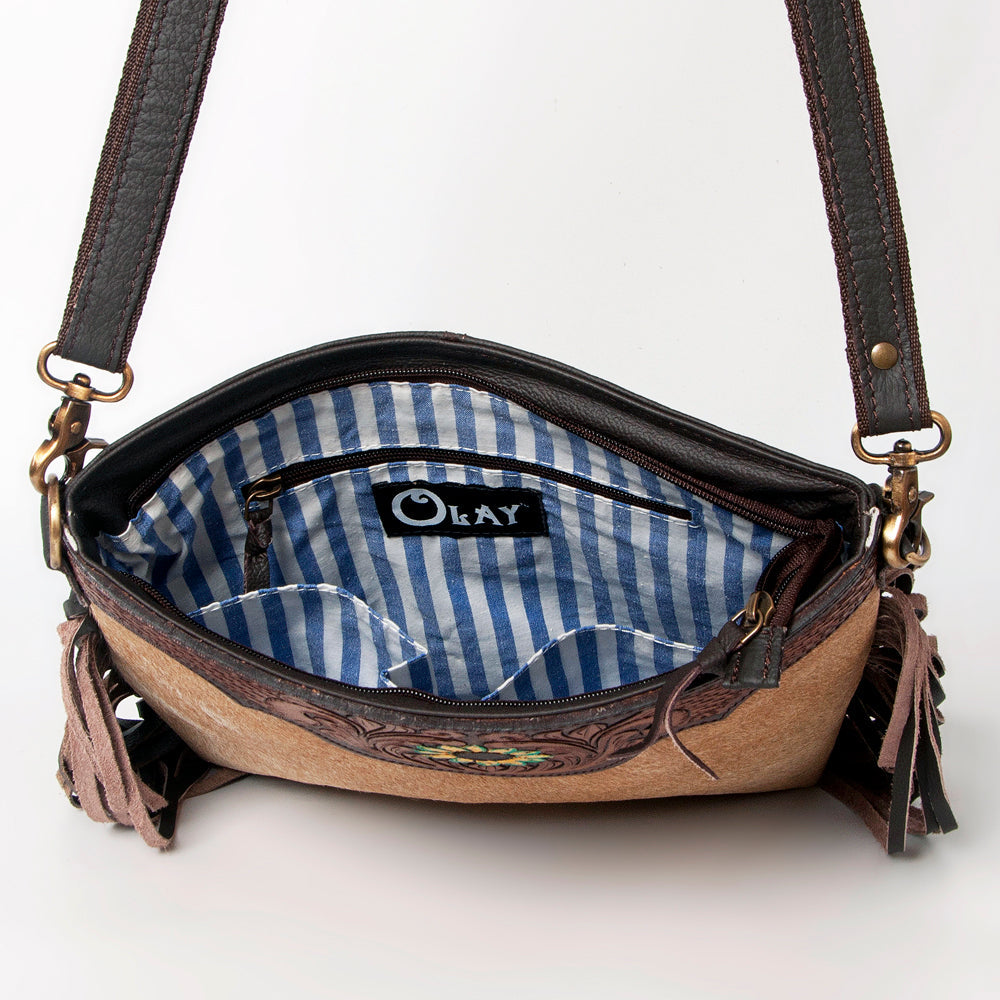 Ohlay Bags KBA121 Cross Body I Hand Tooled Hair-On Genuine Leather Women Bag Western Handbag Purse