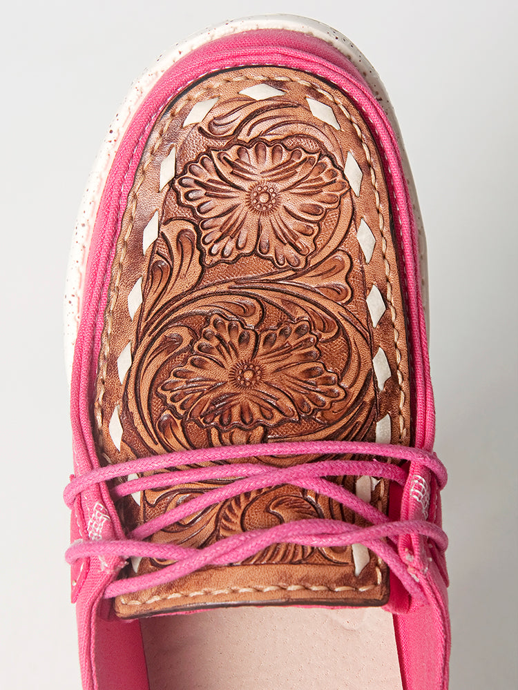 American Darling ADFT133FU4 Hand tooled carved genuine leather trim lightweight shoe footwear slip on