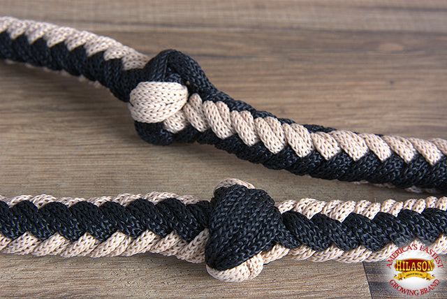 Hilason Braided Poly Barrel Racing Contest Flat Reins 1" X 8Ft Tan Black