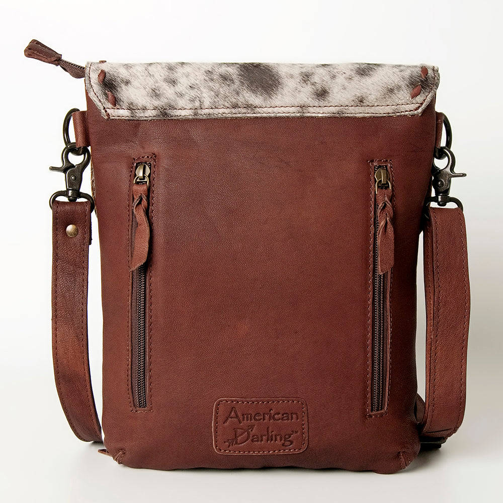 American Darling ADBGZ432B Cross Body Hand Tooled Hair On Genuine Leather women bag western handbag purse
