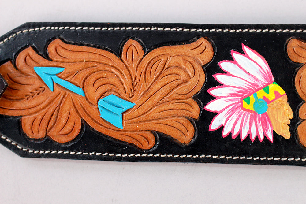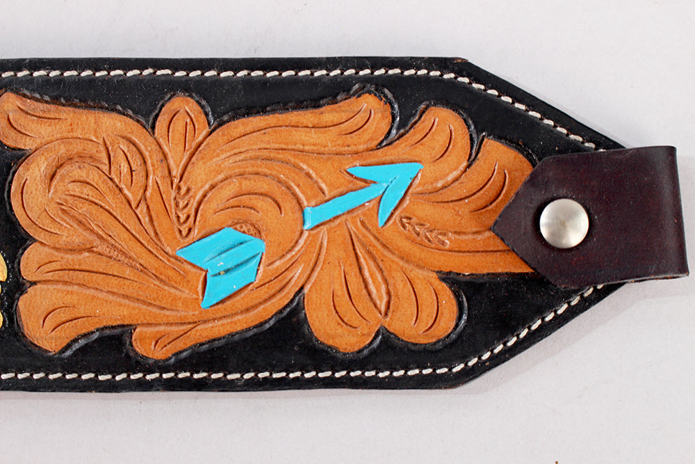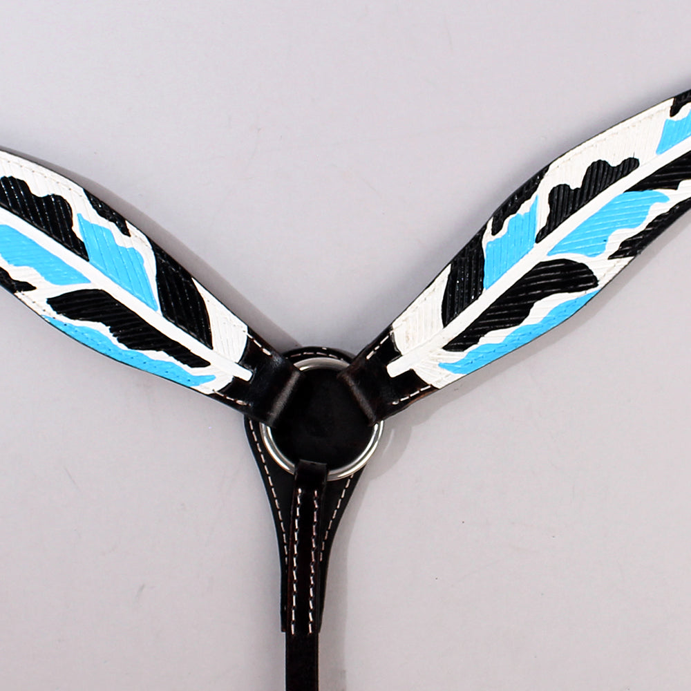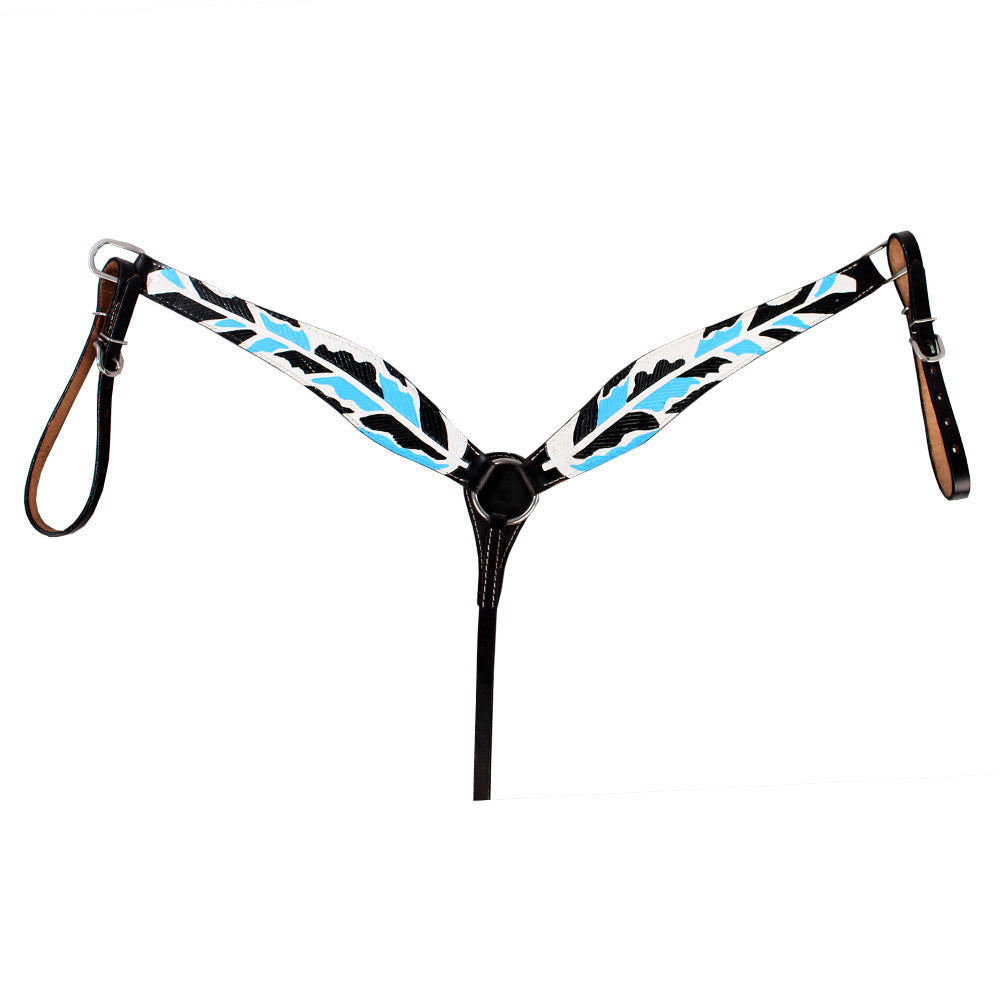 HILASON Western Horse Genuine Leather Printed Breast Collar Turquoise & Black
