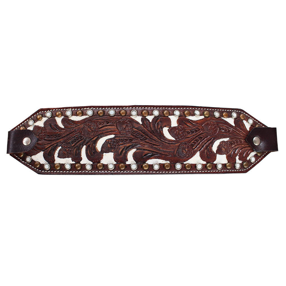HILASON Western Horse Halter Noseband Genuine American Leather Dark Brown w/ White
