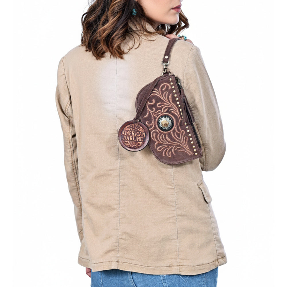 American Darling Genuine Suede Leather Western Wristlet Clutch Floral Scroll