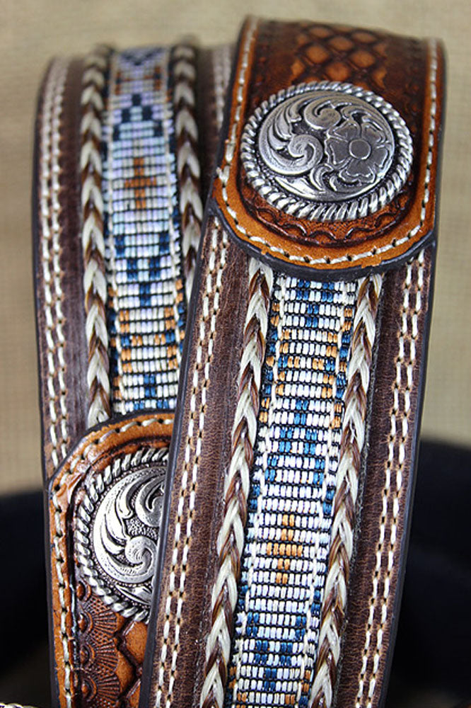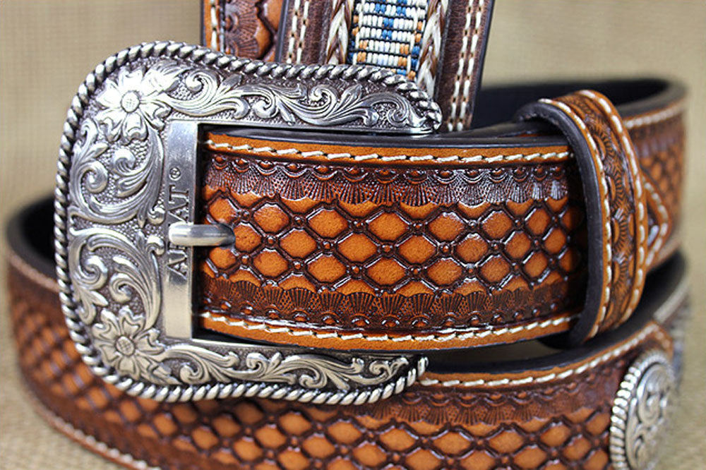 32-46 In Western Ariat Belt Leather Mens Basketweave Conchos Brown
