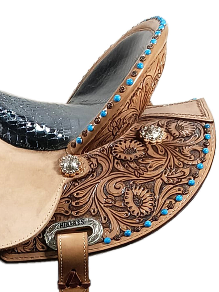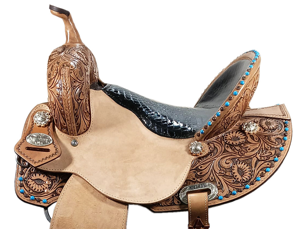 COMFYTACK Western Horse Barrel Racing American Leather Saddle Floral Carved & Tack Set Dark Brown