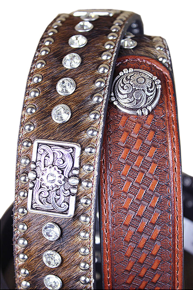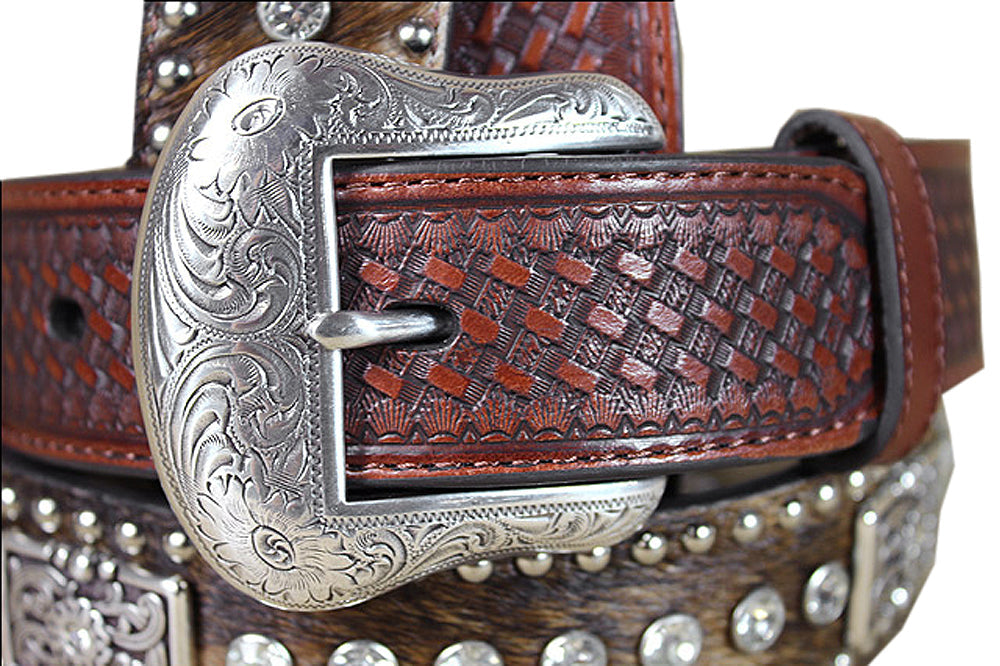 Western Leather Mens Belt Nocona Conchos Rhinestones Hair 32-46 Ines